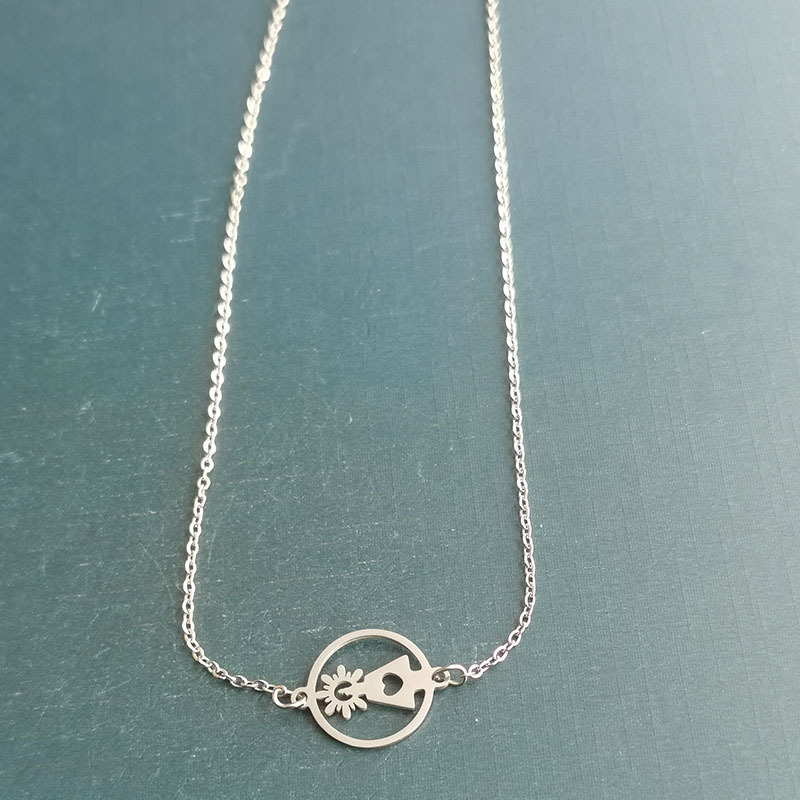 Conector encanto de acero inoxidable, Redondo aplanado, 1/1 aro, color original, 25x30mm, agujero:aproximado 1.5mm, 10PCs/Bolsa, Vendido por Bolsa