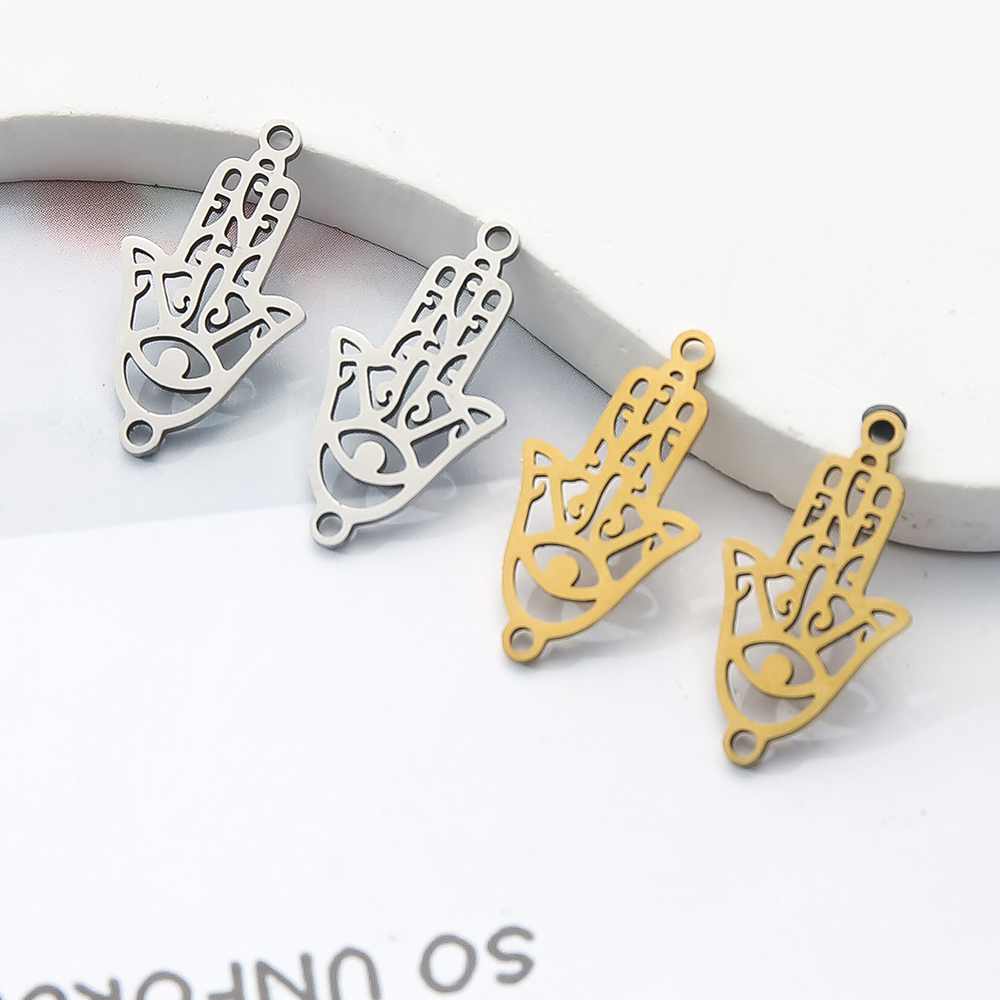 Conector encanto de acero inoxidable, Cruces, 1/1 aro, color original, 37x27x1.8mm, agujero:aproximado 2.5mm, Vendido por UD