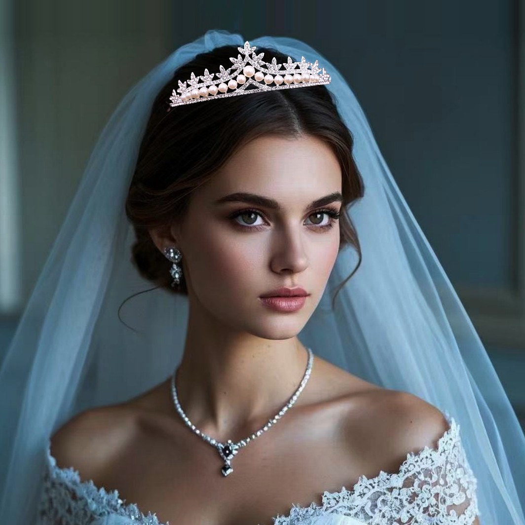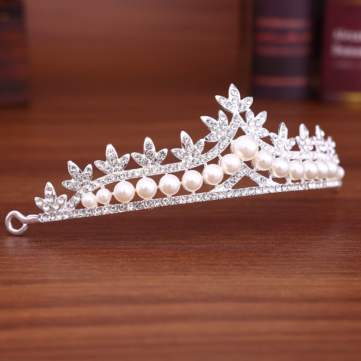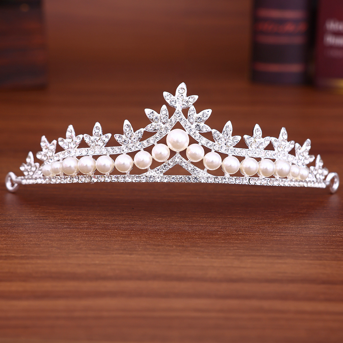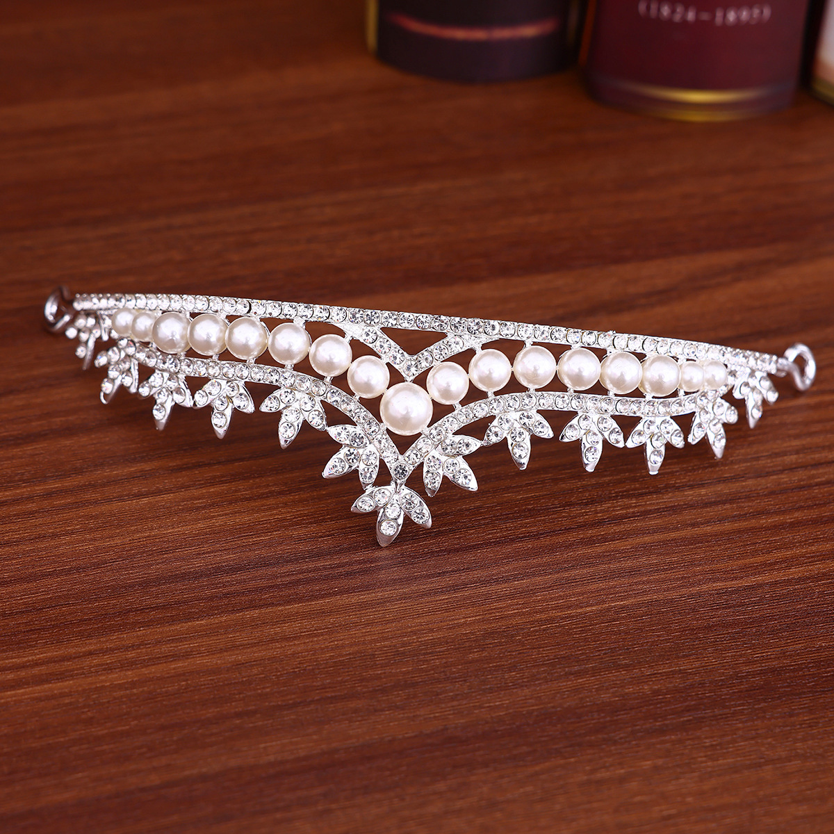 Tiaras nupciales, aleación de zinc, con Perlas plásticas, chapado, para mujer & con diamantes de imitación, 145x45mm, Vendido por UD