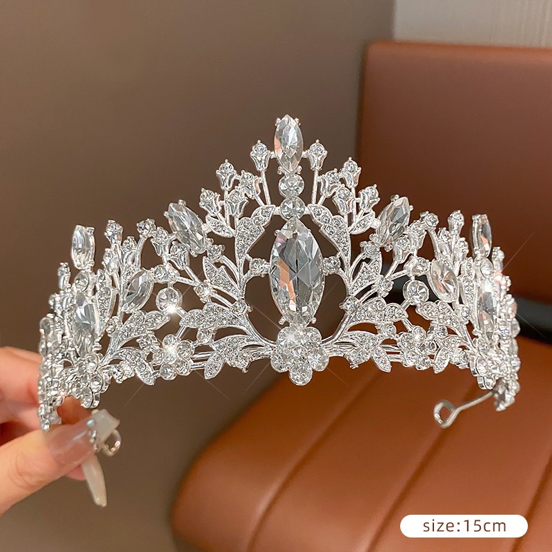 Tiaras nupciales, aleación de zinc, Corona, chapado en color de plata, con diamantes de imitación, Blanco, 154x47mm, Vendido por UD