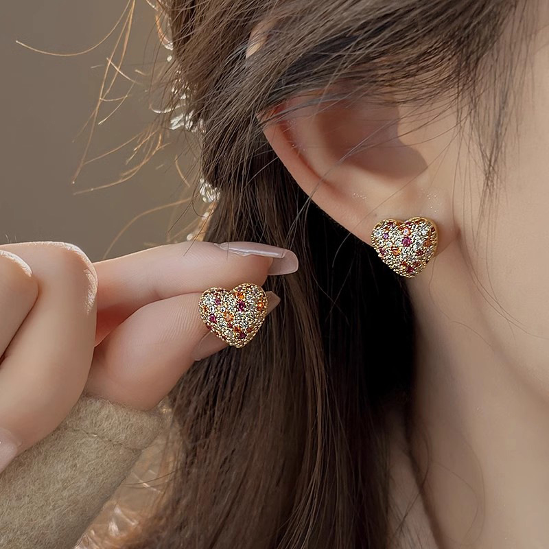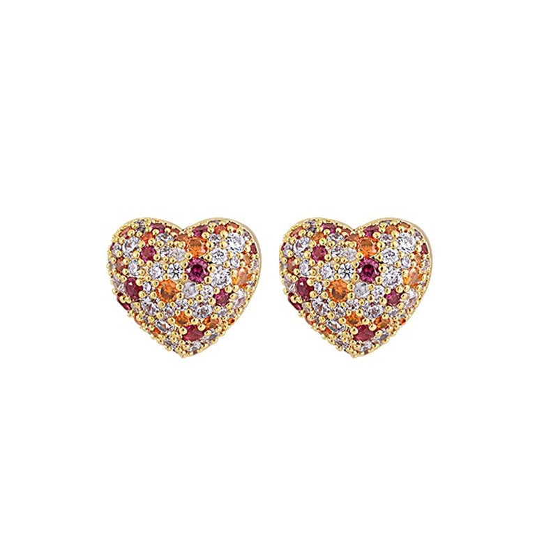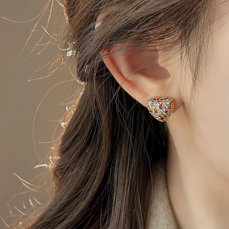 Cubic Zirconia Pendiente Brass Micro Pave, metal, Corazón, chapado, micro arcilla de zirconia cúbica & para mujer & 2-tono, Vendido por Par