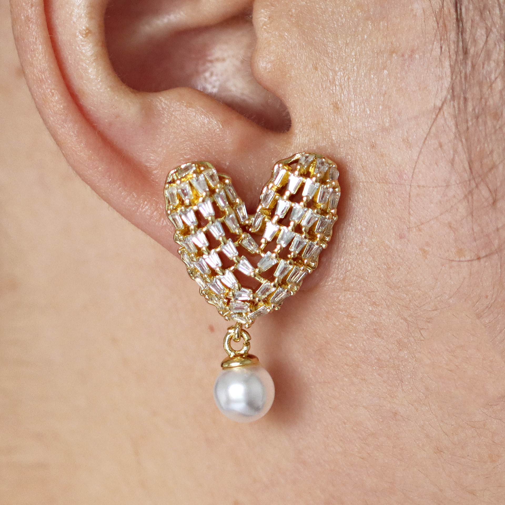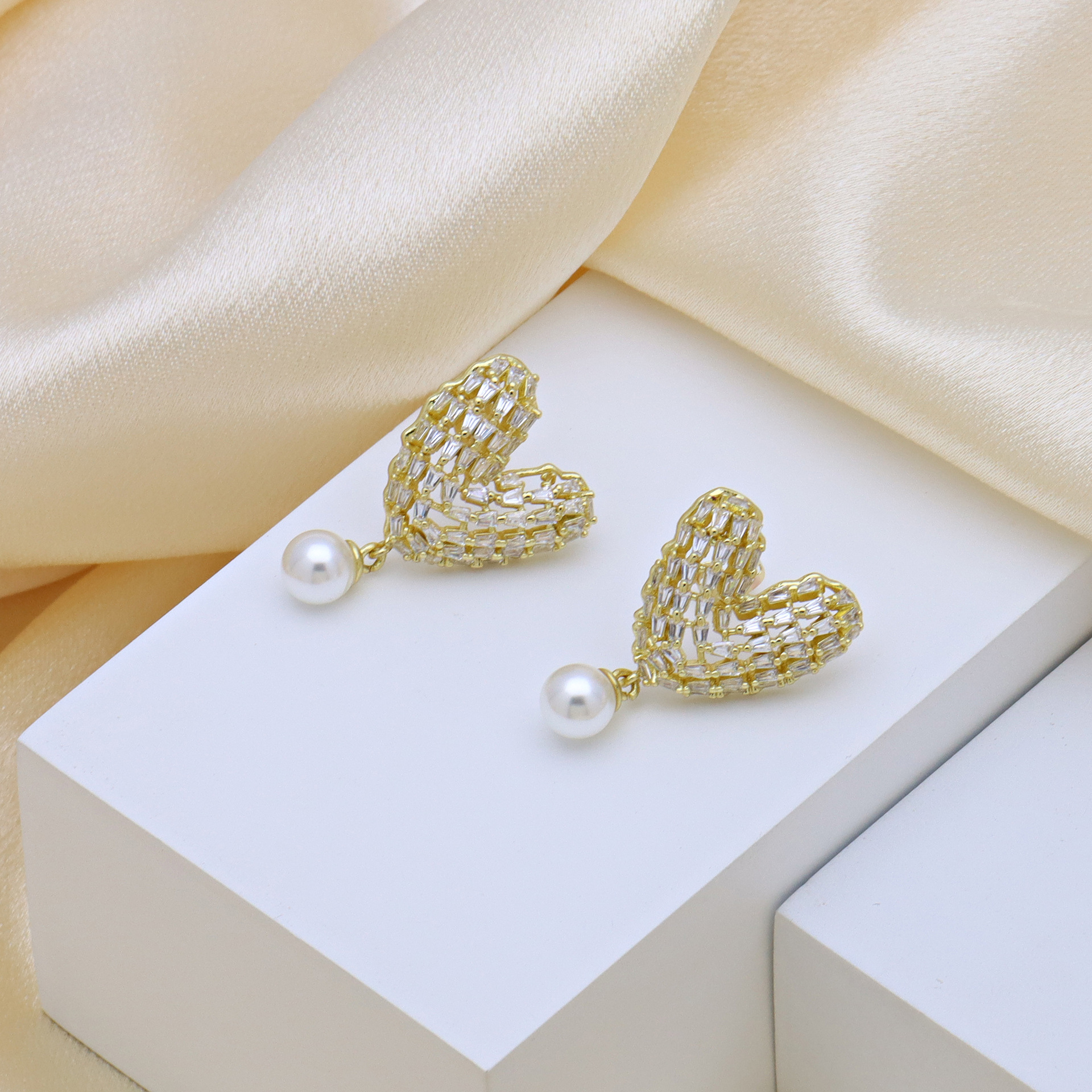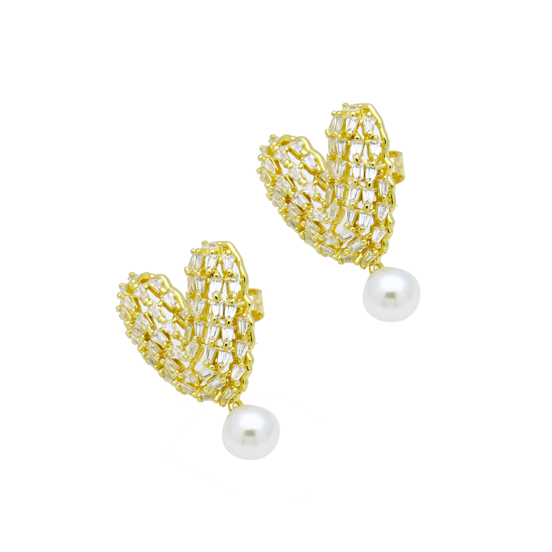 Cubic Zirconia Pendiente Brass Micro Pave, metal, con Perlas plásticas, chapado en color dorado, diferentes estilos para la opción & para mujer & con circonia cúbica, más colores para la opción, Vendido por Par