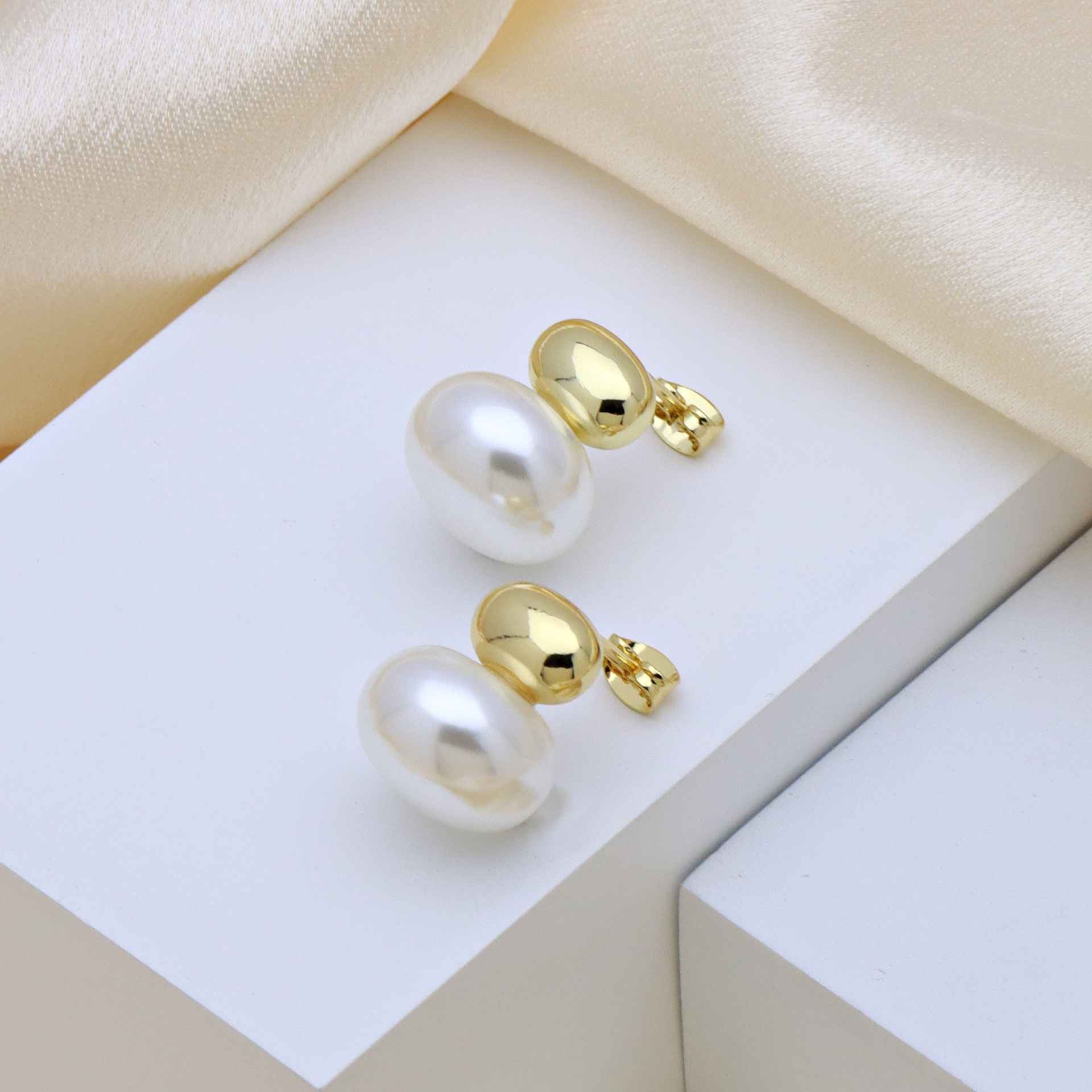 Cubic Zirconia Pendiente Brass Micro Pave, metal, con Ostra Perla, Trébol de cuatro hojas, chapado en oro real, Joyería & micro arcilla de zirconia cúbica & para mujer, Vendido por Par