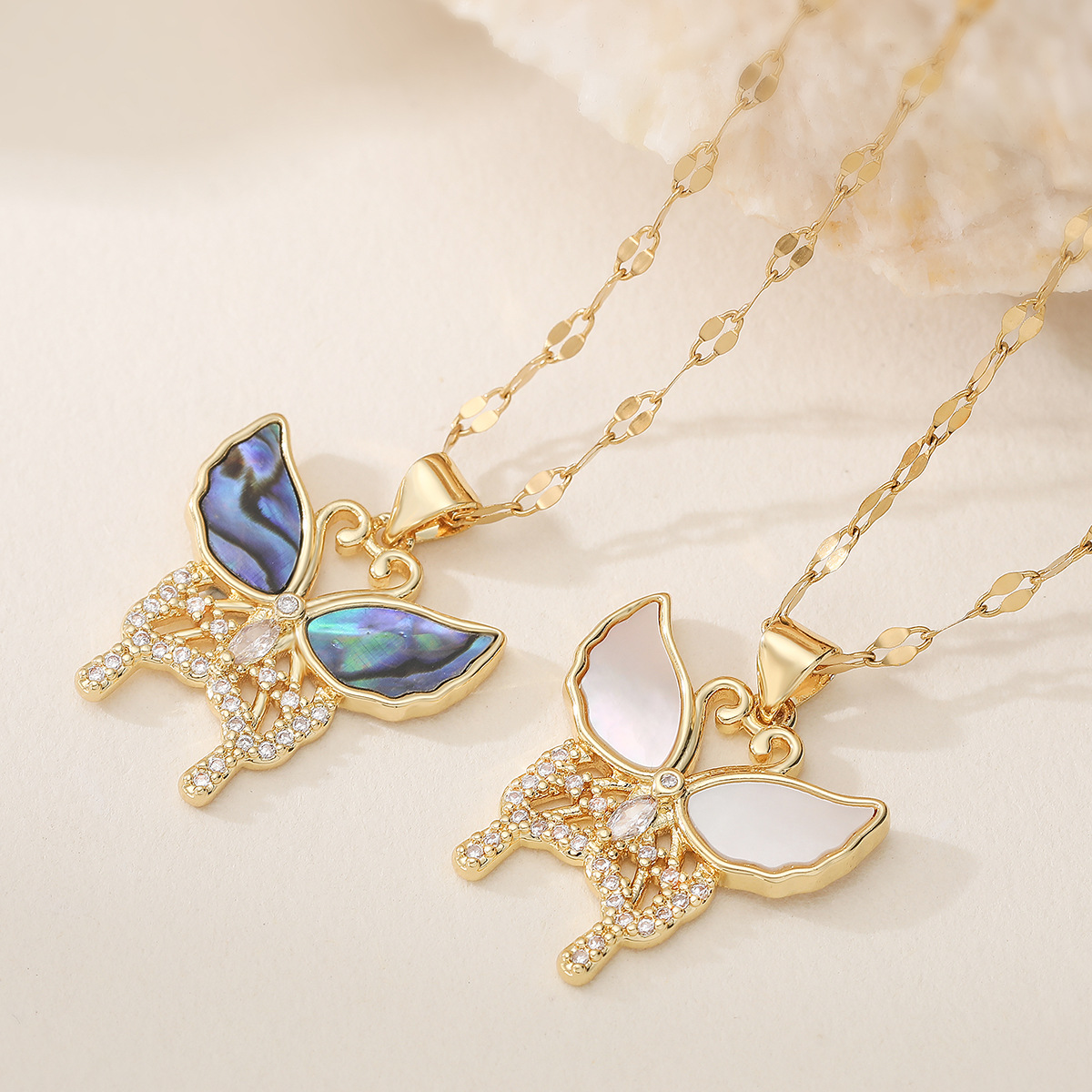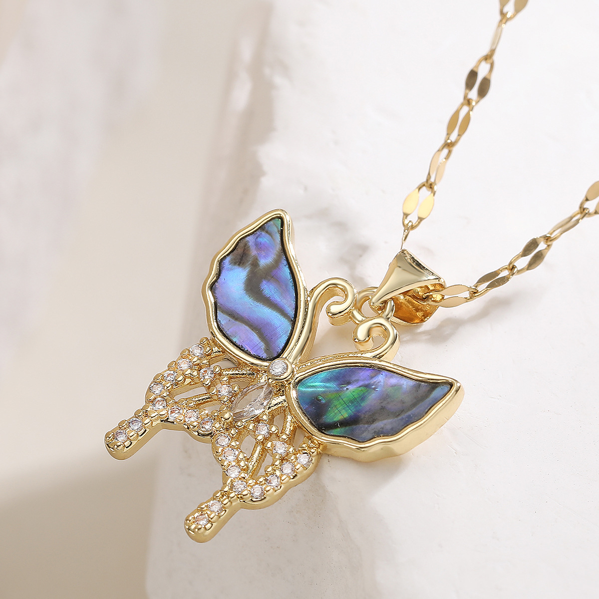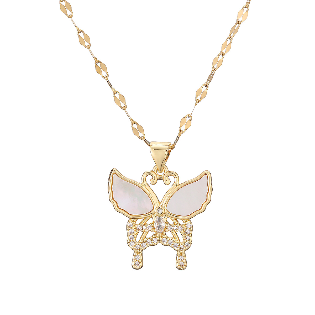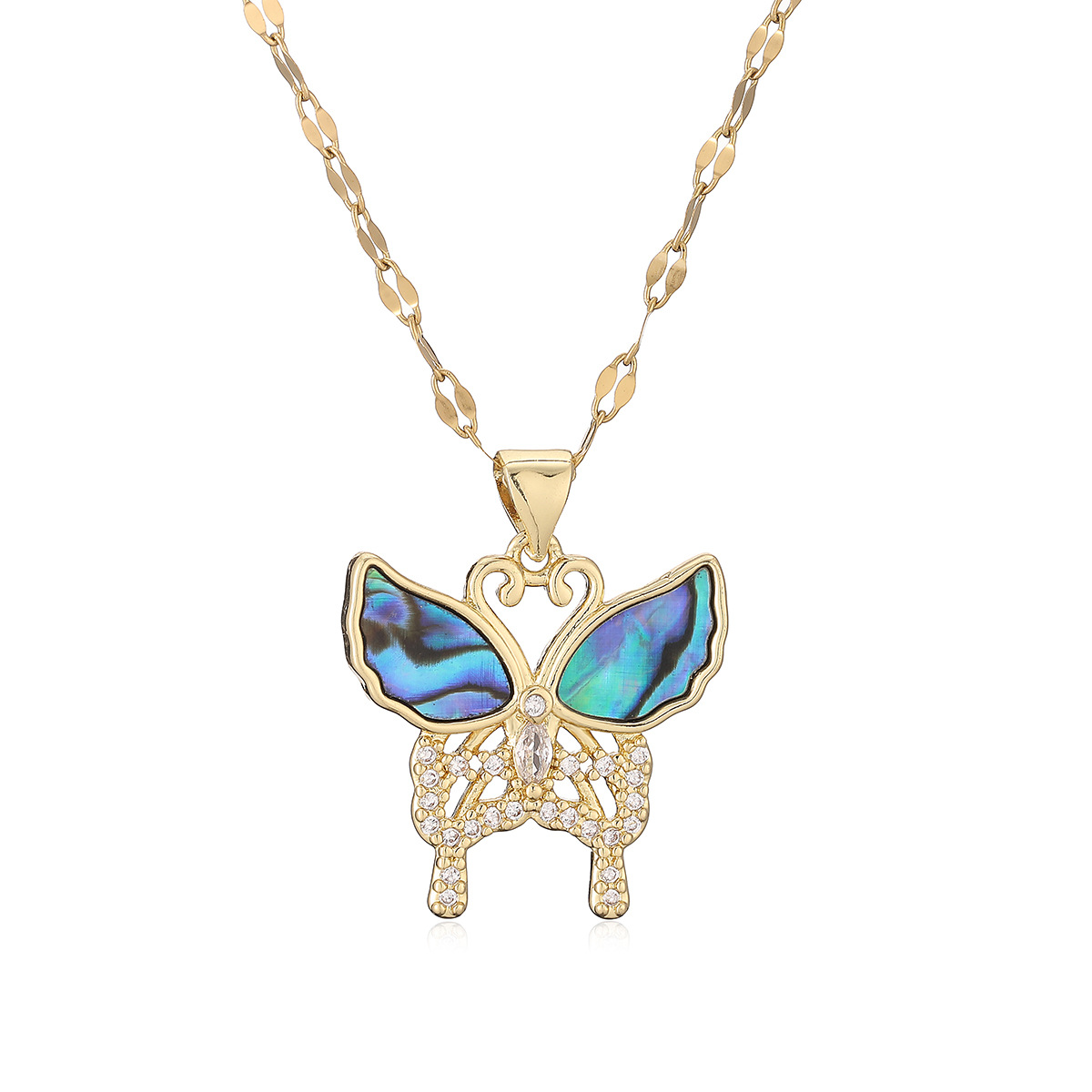 Cúbicos circón Collar de latón Micro pavimenta, metal, con 5cm extender cadena, Mariposa, chapado en oro real, Joyería & ajustable & diferentes estilos para la opción & micro arcilla de zirconia cúbica & para mujer, más colores para la opción, 21x25mm, longitud:aproximado 45 cm, Vendido por Sarta