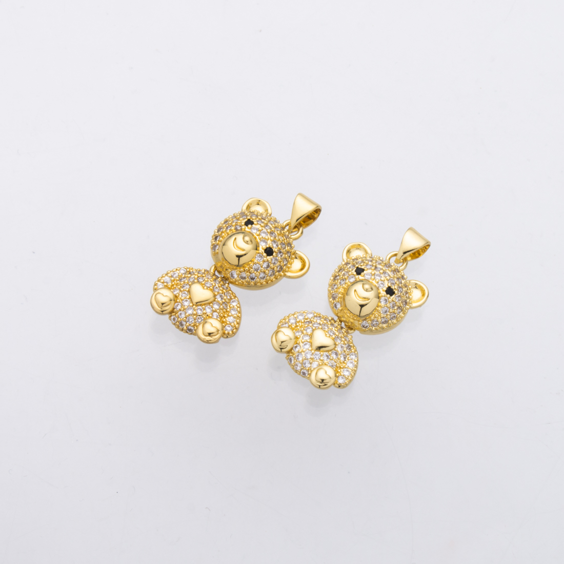 Colgante de Micro Pavé de Zirconía Cúbica, metal, Oso, chapado en color dorado, Bricolaje & micro arcilla de zirconia cúbica, 30x15x8mm, Vendido por UD