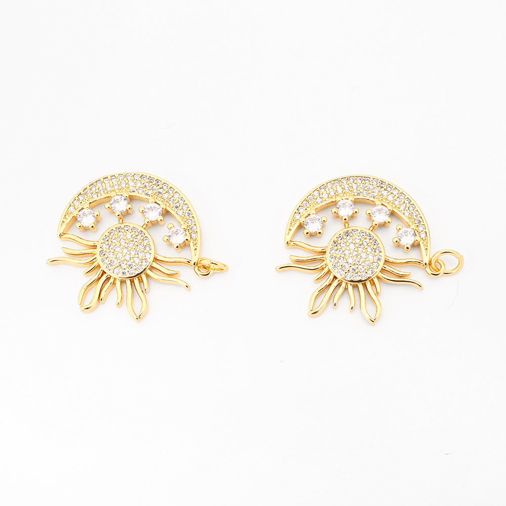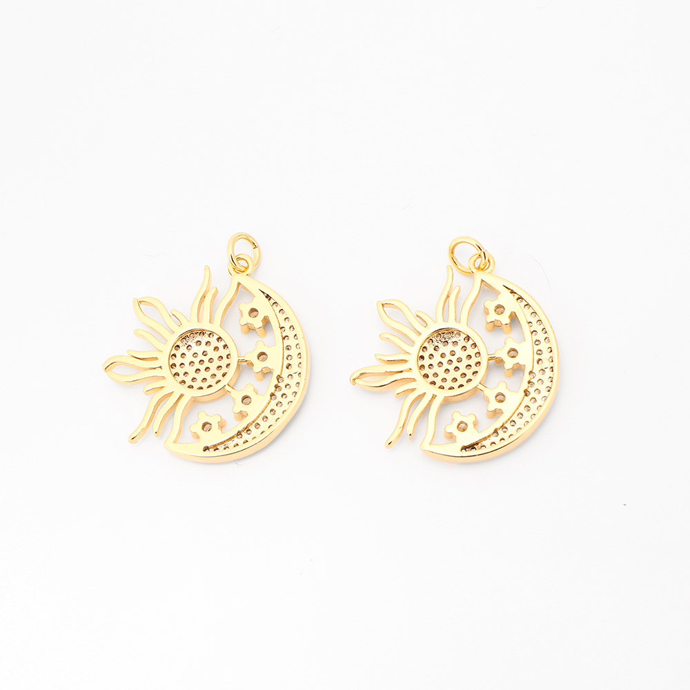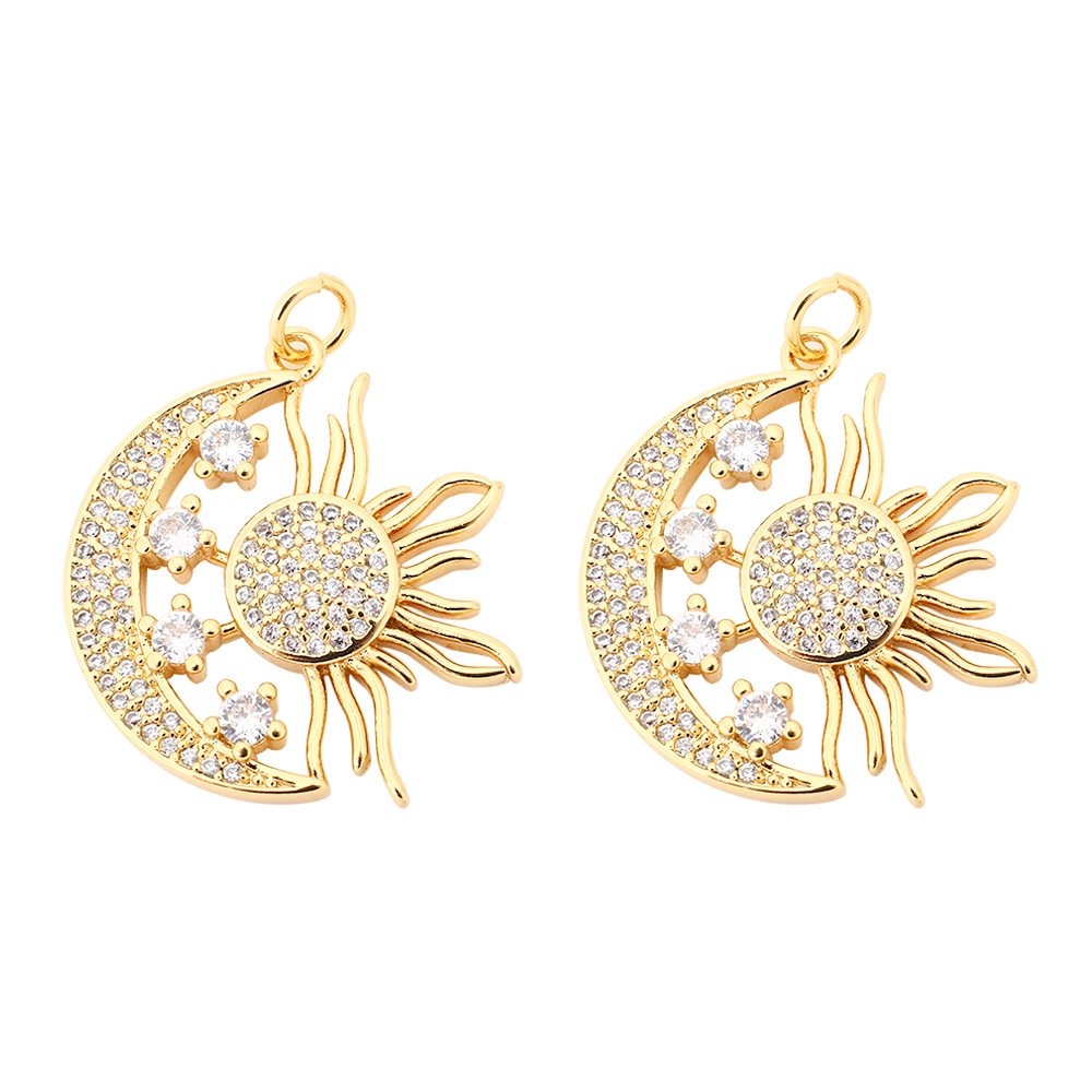 Colgante de Micro Pavé de Zirconía Cúbica, metal, Luna, chapado en color dorado, Bricolaje & micro arcilla de zirconia cúbica, dorado, 15x23x5mm, agujero:aproximado 2mm, Vendido por UD