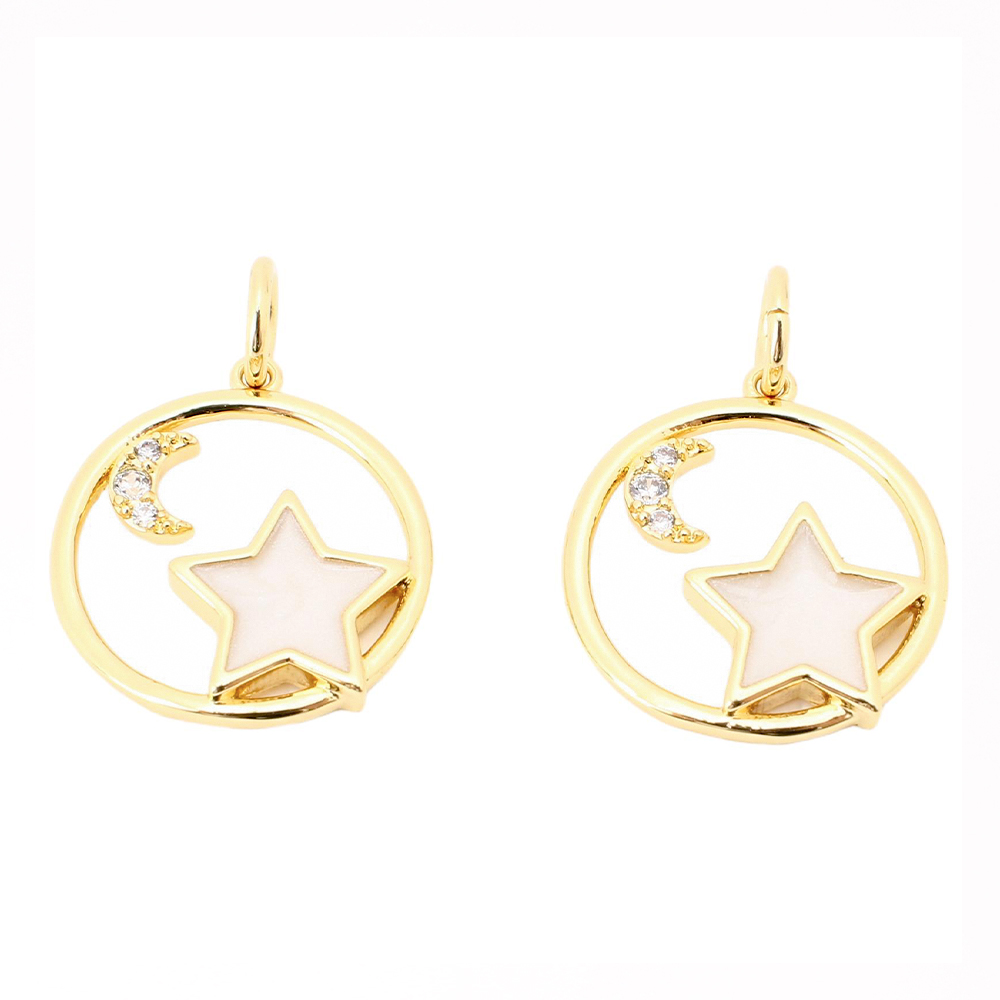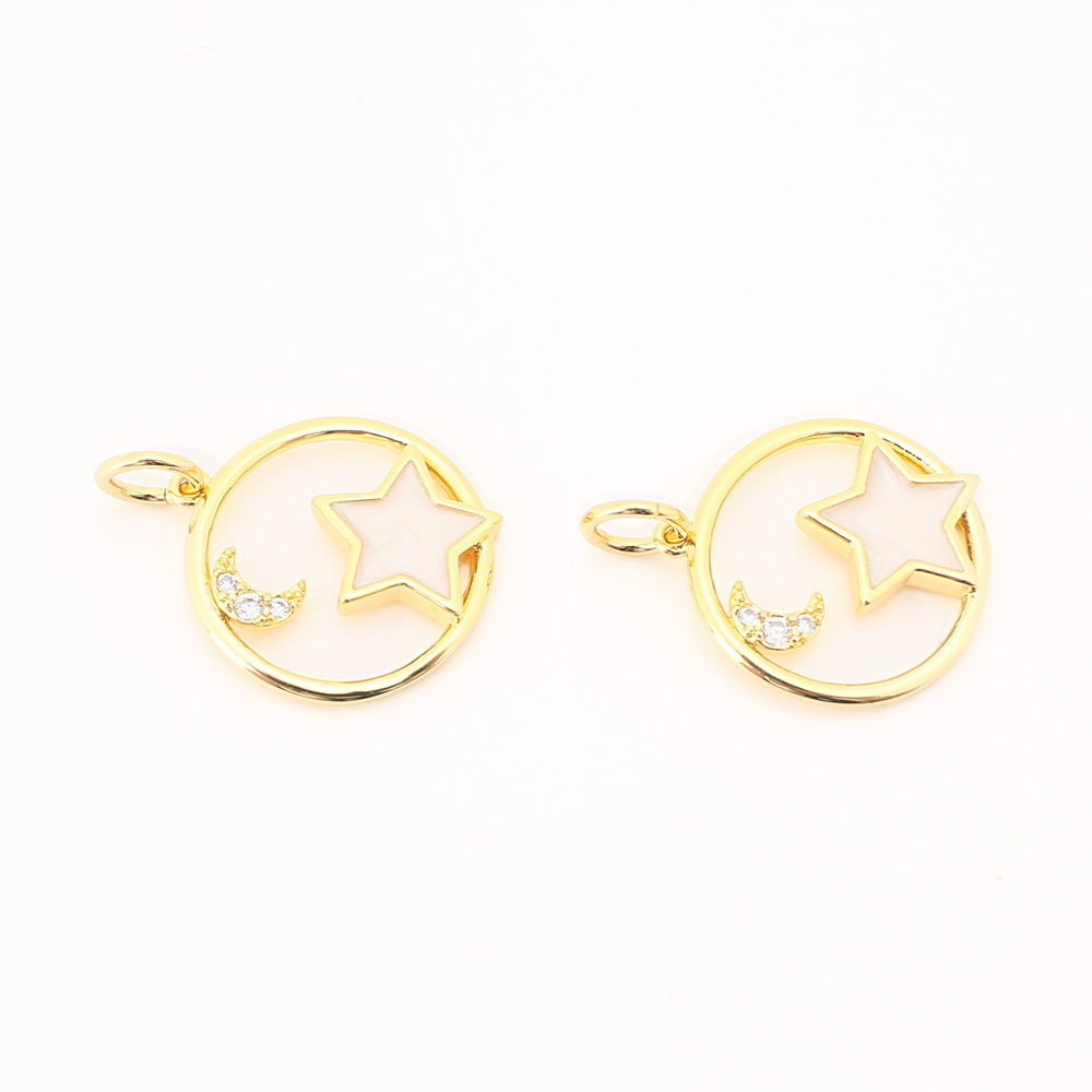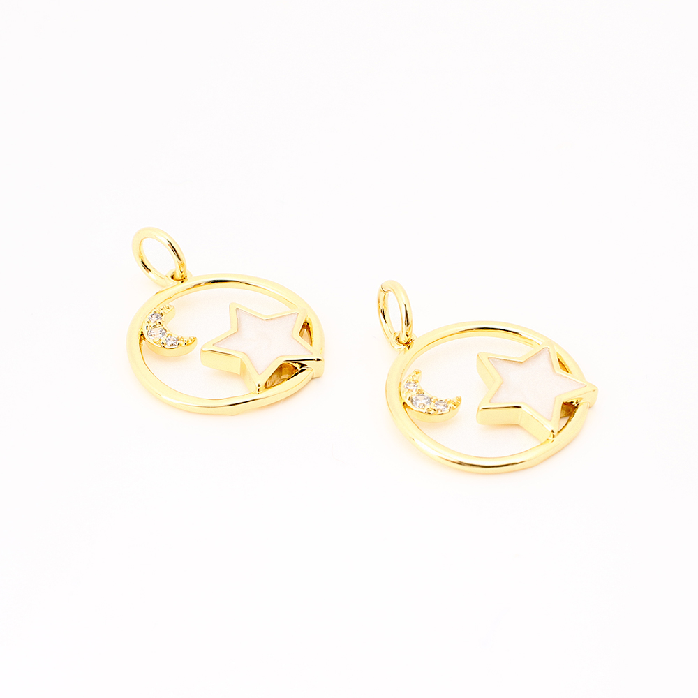 Colgante de Micro Pavé de Zirconía Cúbica, metal, con Nácar, chapado, Bricolaje & diferentes estilos para la opción & micro arcilla de zirconia cúbica, dorado, Vendido por UD
