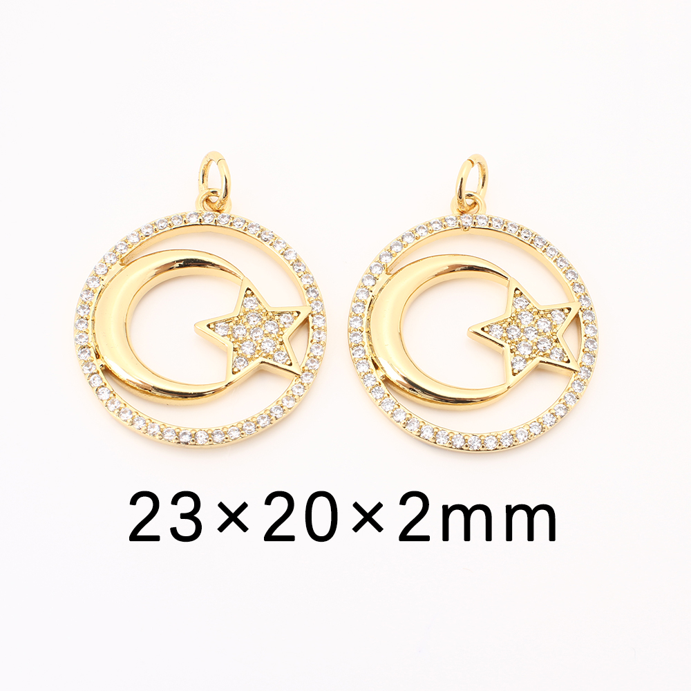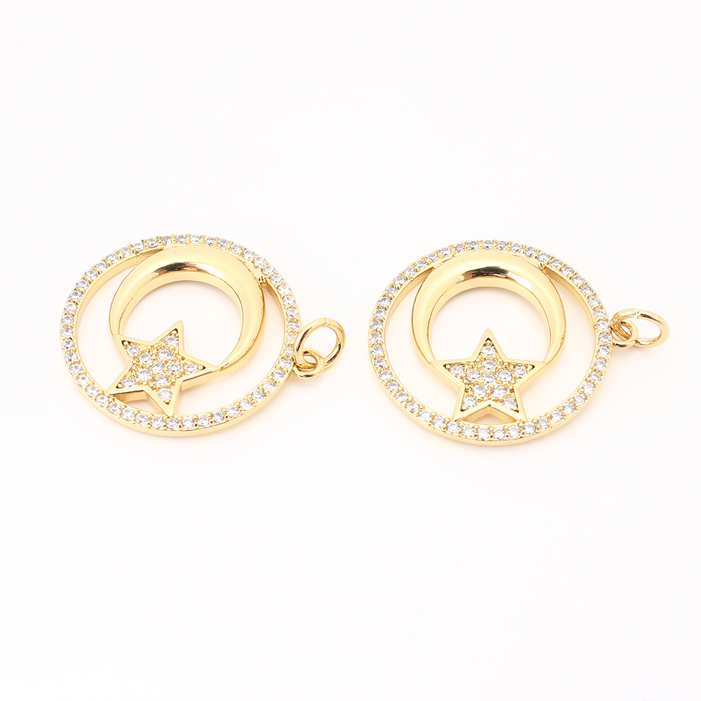 Colgante de Micro Pavé de Zirconía Cúbica, metal, Luna, chapado en color dorado, Bricolaje & micro arcilla de zirconia cúbica, dorado, 15x23x5mm, agujero:aproximado 2mm, Vendido por UD