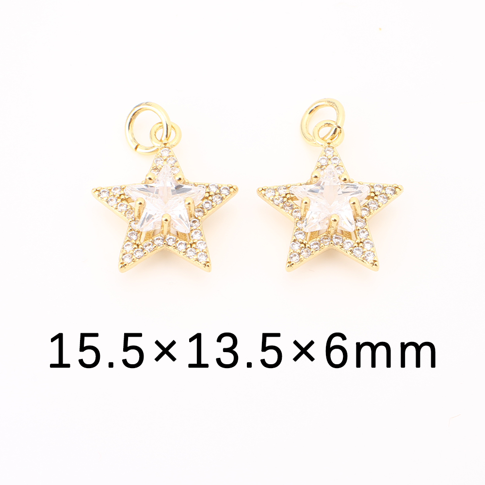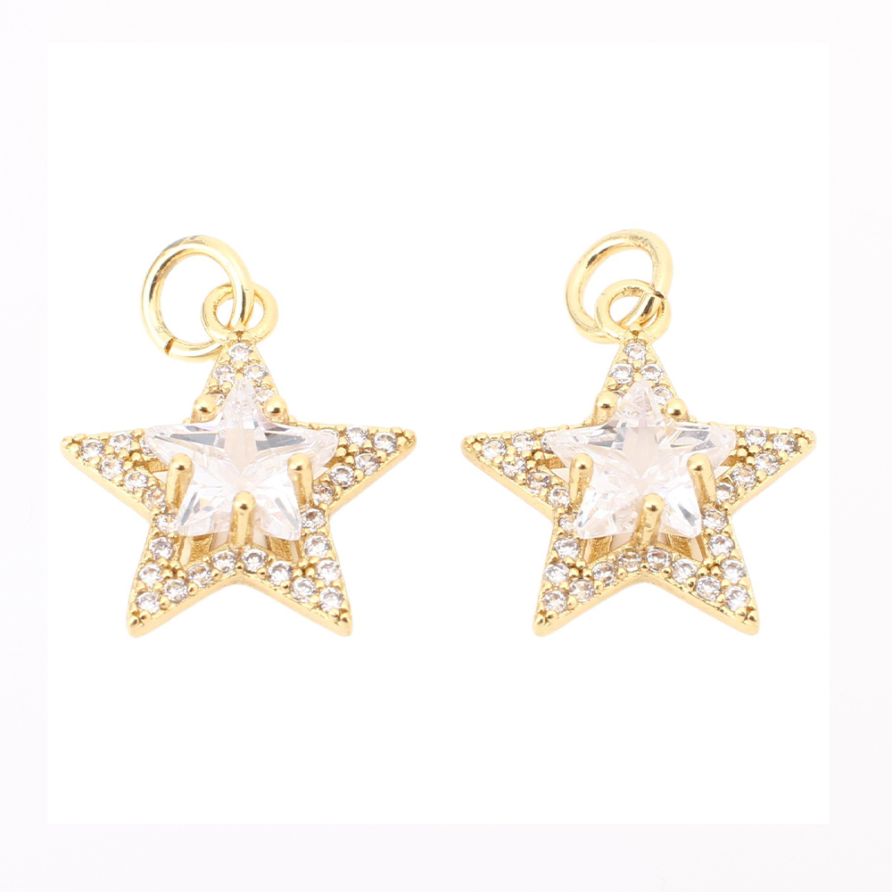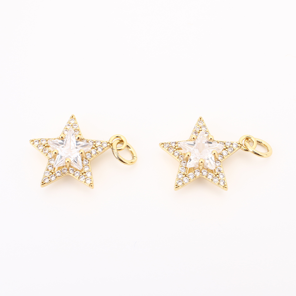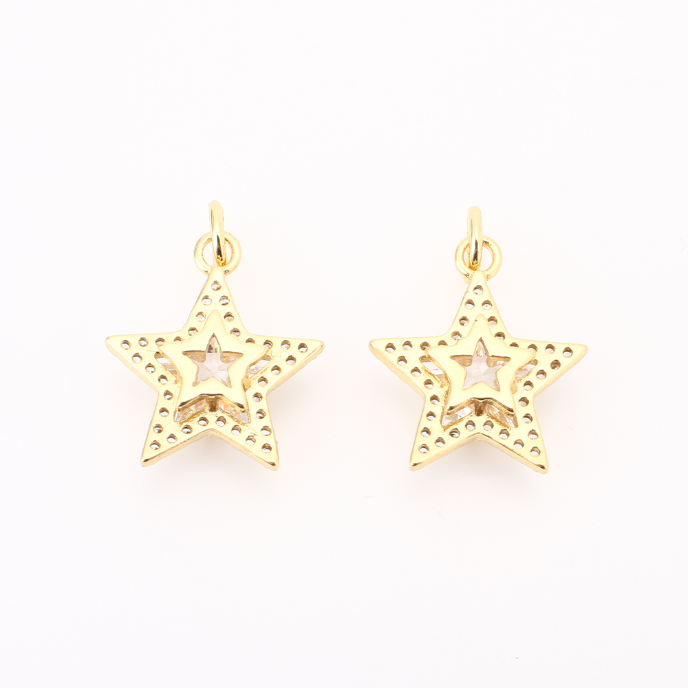 Colgante de Micro Pavé de Zirconía Cúbica, metal, Estrella, Bricolaje & micro arcilla de zirconia cúbica, dorado, 15.5x13.5x6mm, Vendido por UD