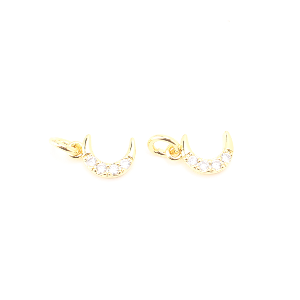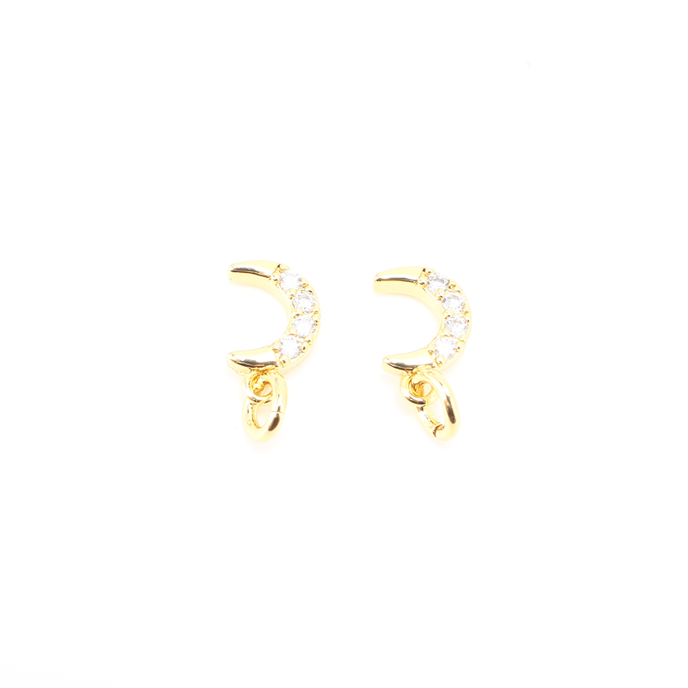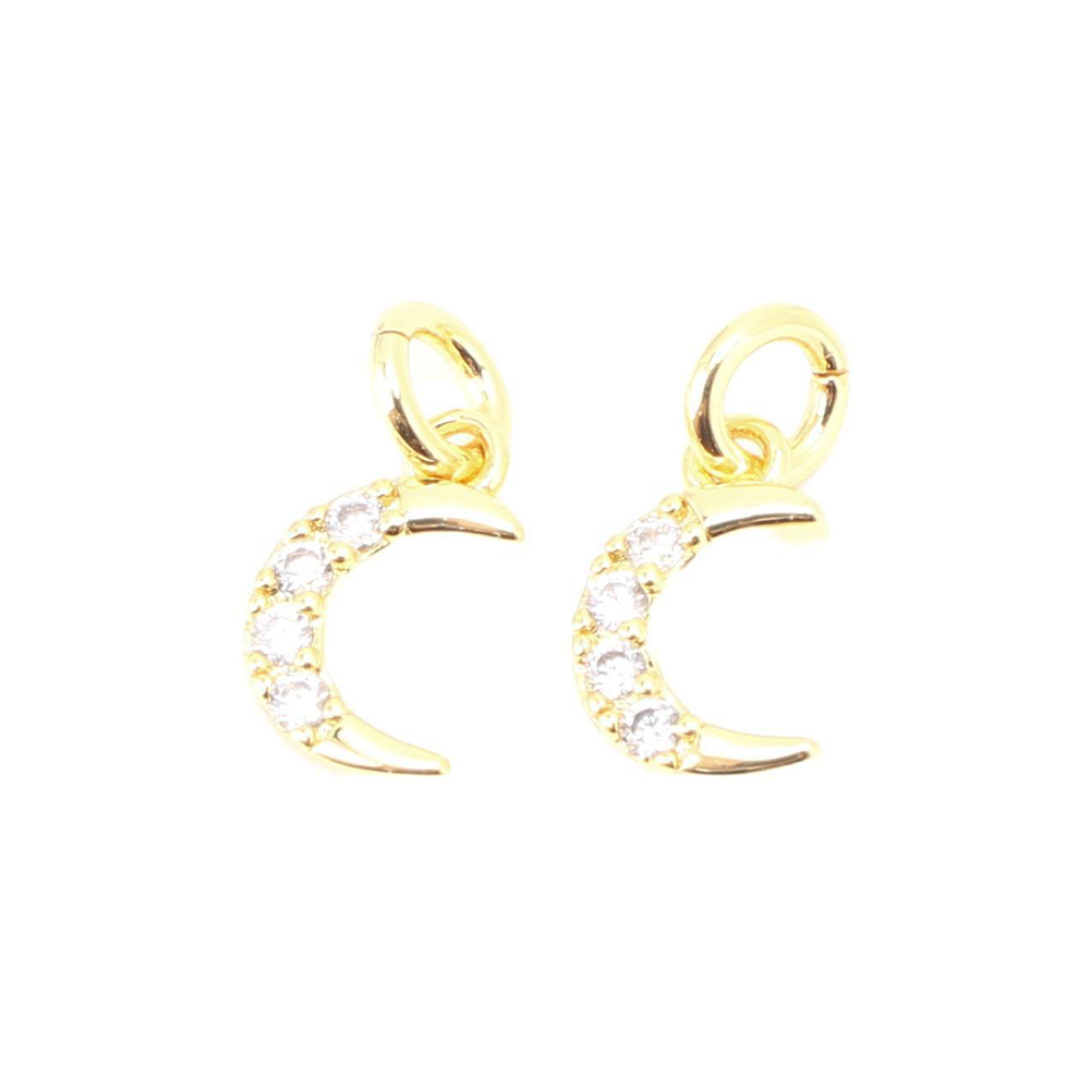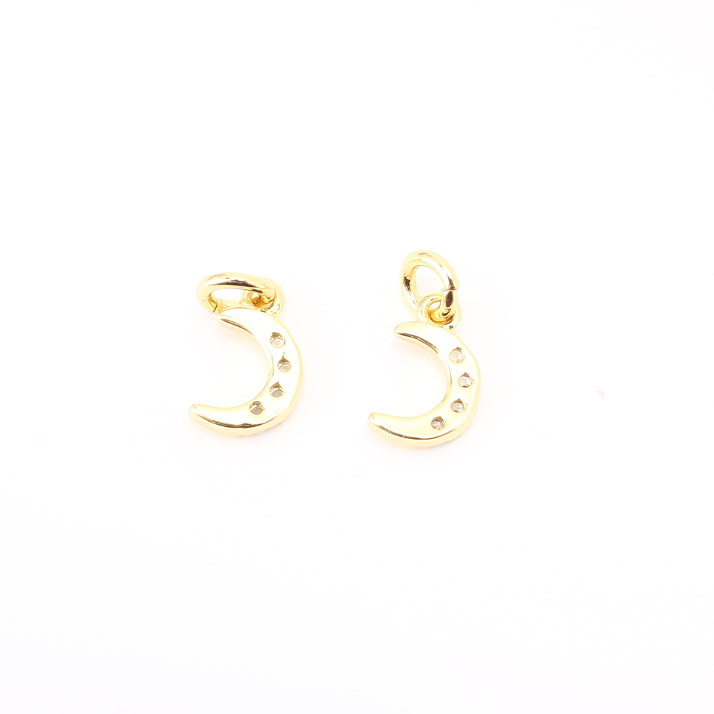 Colgante de Micro Pavé de Zirconía Cúbica, metal, Luna, Bricolaje & micro arcilla de zirconia cúbica, dorado, 8x5x1.5mm, Vendido por UD