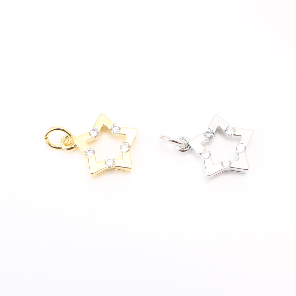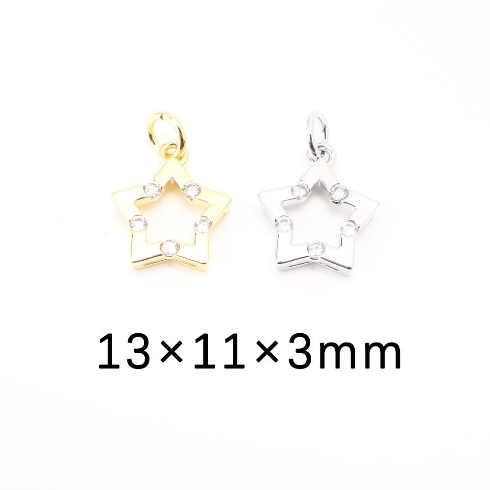 Colgante de Micro Pavé de Zirconía Cúbica, metal, Estrella, Bricolaje & micro arcilla de zirconia cúbica & hueco, más colores para la opción, 13x11x3mm, Vendido por UD