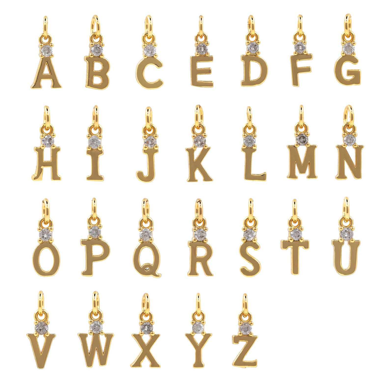 Colgante de Micro Pavé de Zirconía Cúbica, metal, Carta del alfabeto, chapado en color dorado, Bricolaje & diferentes estilos para la opción & micro arcilla de zirconia cúbica, 5x12mm, Vendido por UD