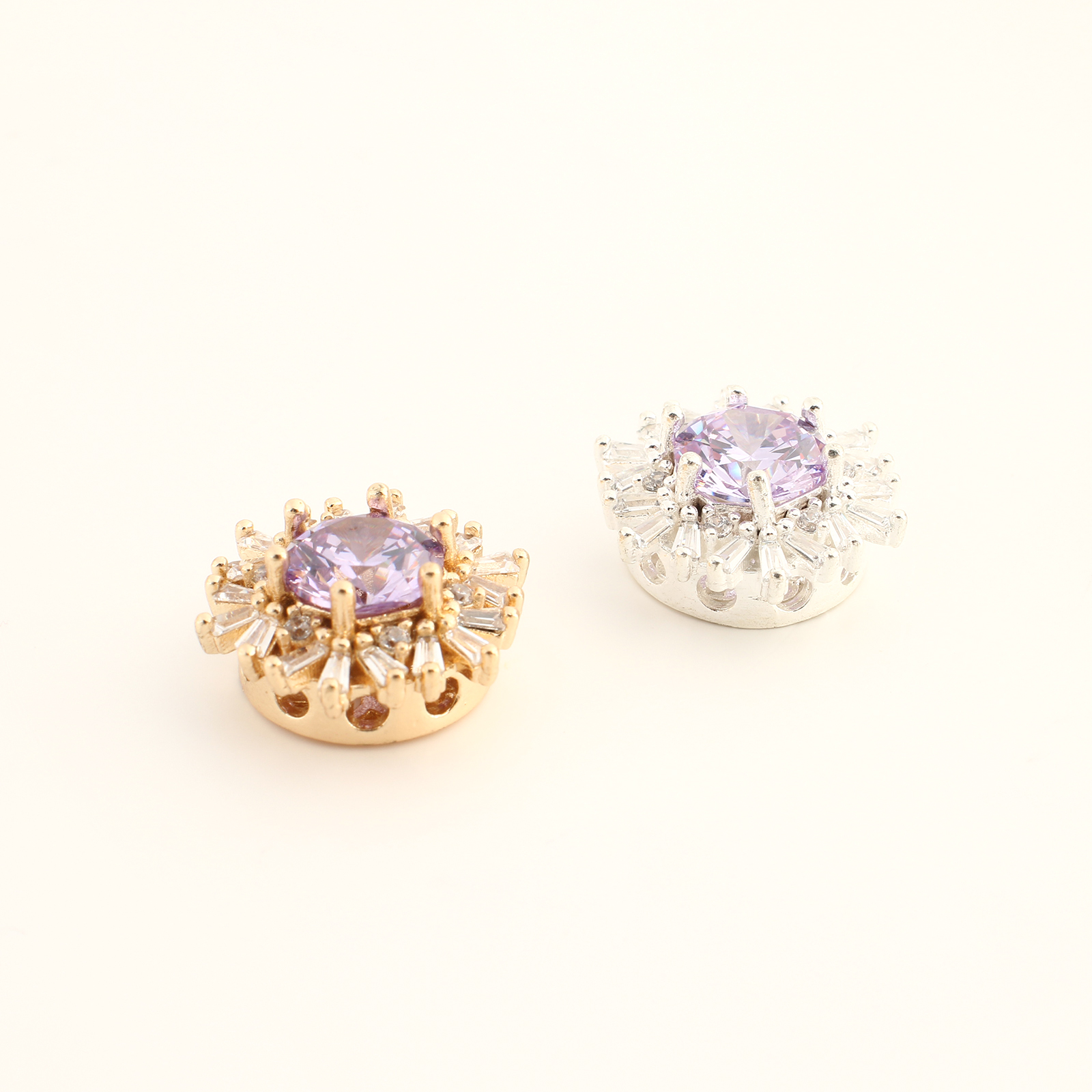 metal granos del resbalador, con Vidrio, cantó chapado en oro, micro arcilla de zirconia cúbica & hueco, Rosado, 12x14x7mm, agujero:aproximado 2mm, Vendido por UD