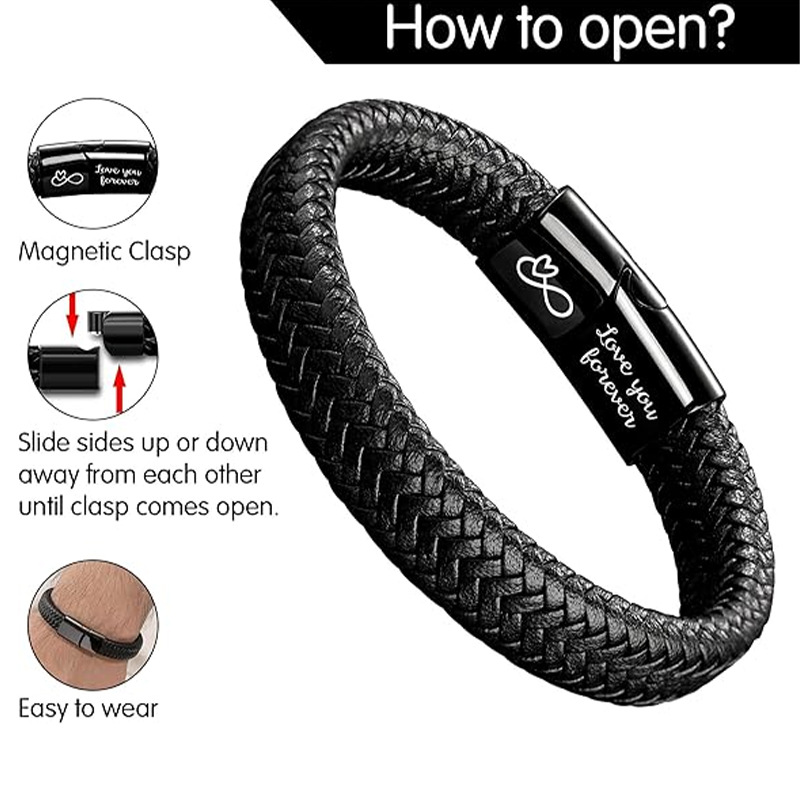 Pulseras de Cordón de PU, aleación de zinc, con Cuero de PU & acero inoxidable 304, hecho a mano, para hombre, Negro, Vendido por UD
