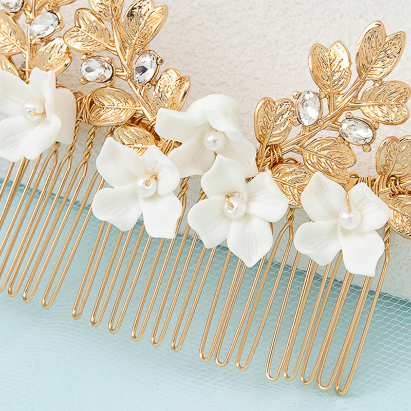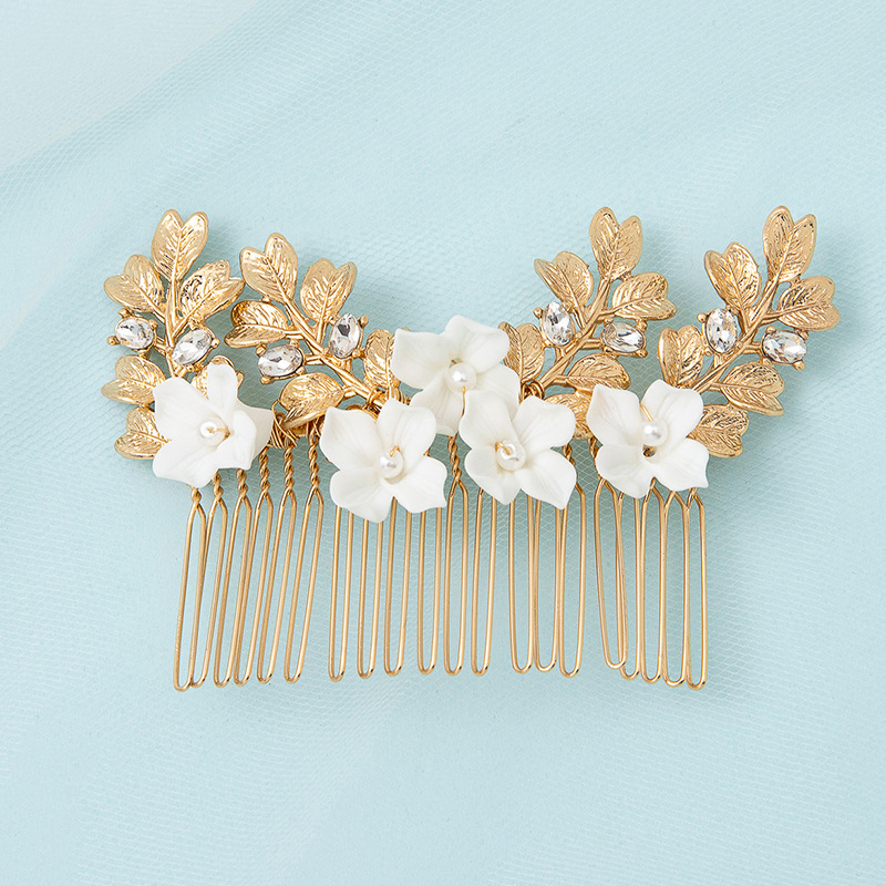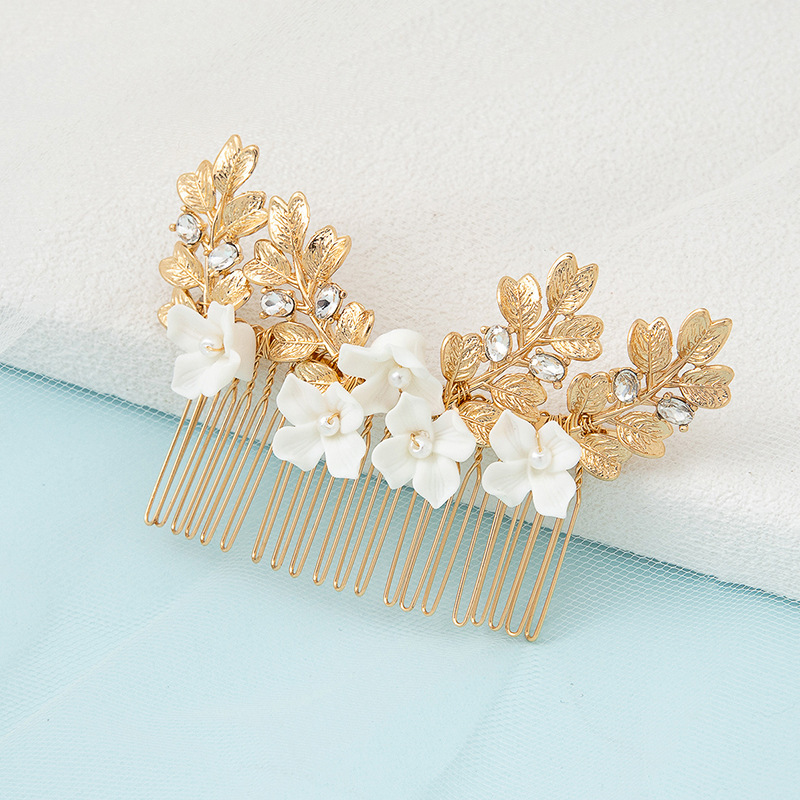 Peine Decorativo para Novia, aleación de zinc, con alambre de latón & Arcilla polimero & Cristal, hecho a mano, Joyería & para mujer, dorado, 170x50x50mm, Vendido por UD