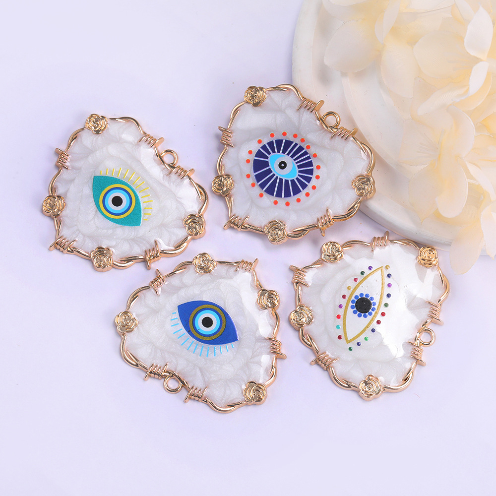 Colgante Mal de Ojo de Aleación de Zinc, Corazón, chapado en color dorado, Bricolaje & esmalte, más colores para la opción, 49x47mm, 10PCs/Bolsa, Vendido por Bolsa