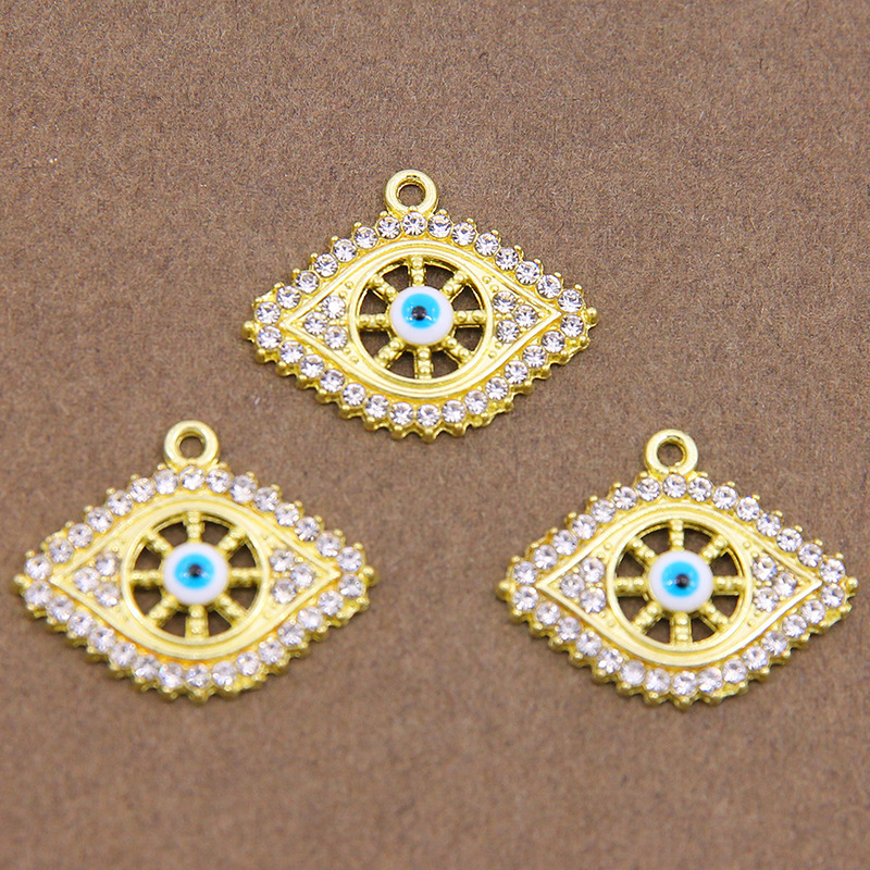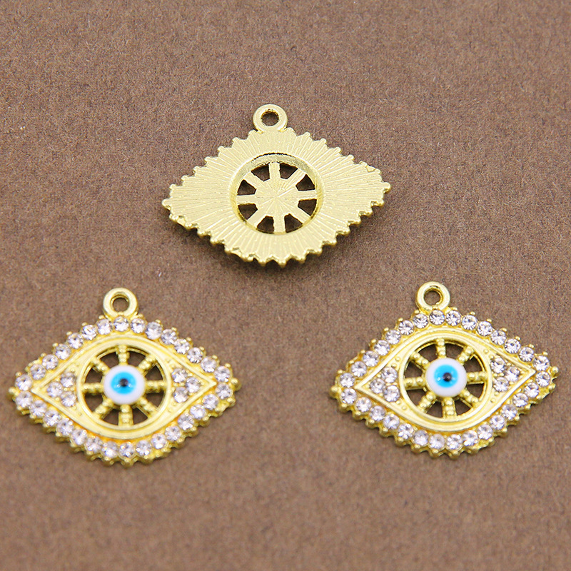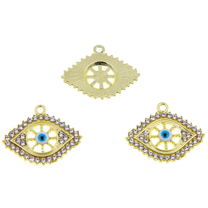 Colgante Mal de Ojo de Aleación de Zinc, ojo de malvado, chapado en color dorado, Bricolaje & con diamantes de imitación, dorado, 21x27x3mm, 100PCs/Bolsa, Vendido por Bolsa