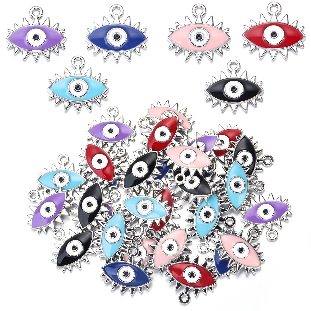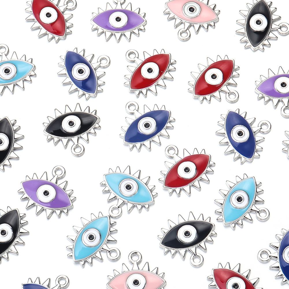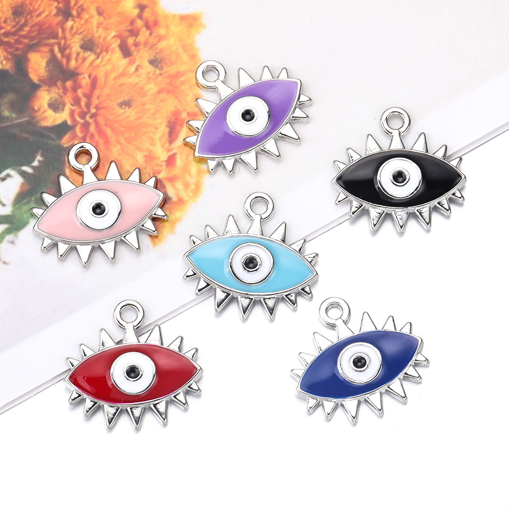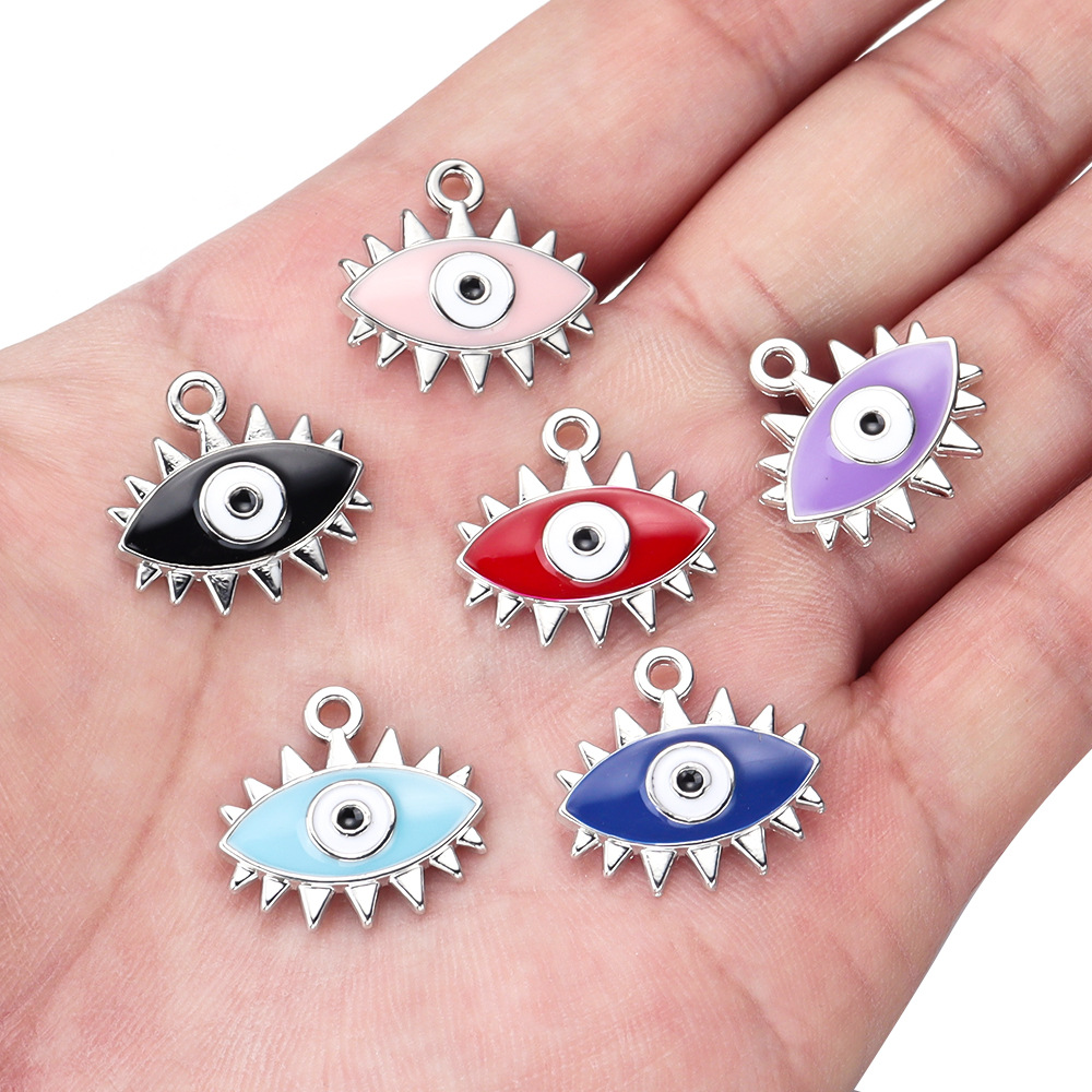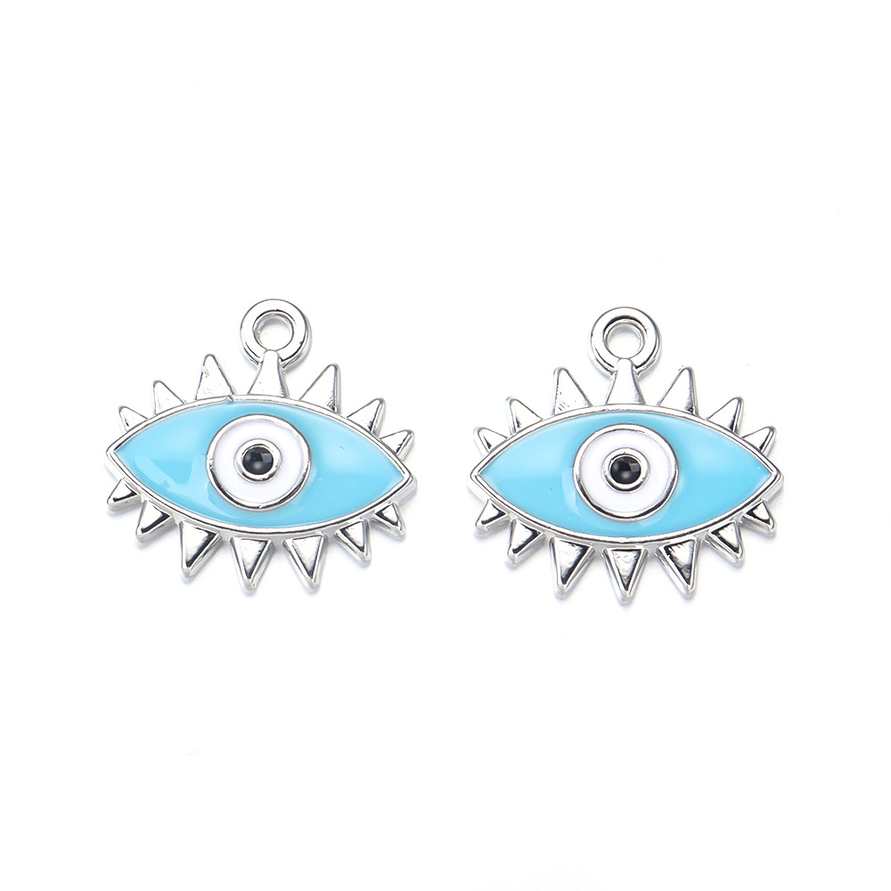 Colgante Mal de Ojo de Aleación de Zinc, chapado en color de plata, Bricolaje & patrón de malvado de ojo & esmalte, más colores para la opción, 18x19mm, Vendido por UD