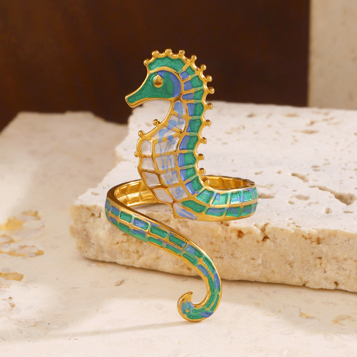 Esmalte de acero inoxidable anillo de dedo, acero inoxidable 304, Caballito de mar, chapado, Joyería & para mujer, dorado, Vendido por UD