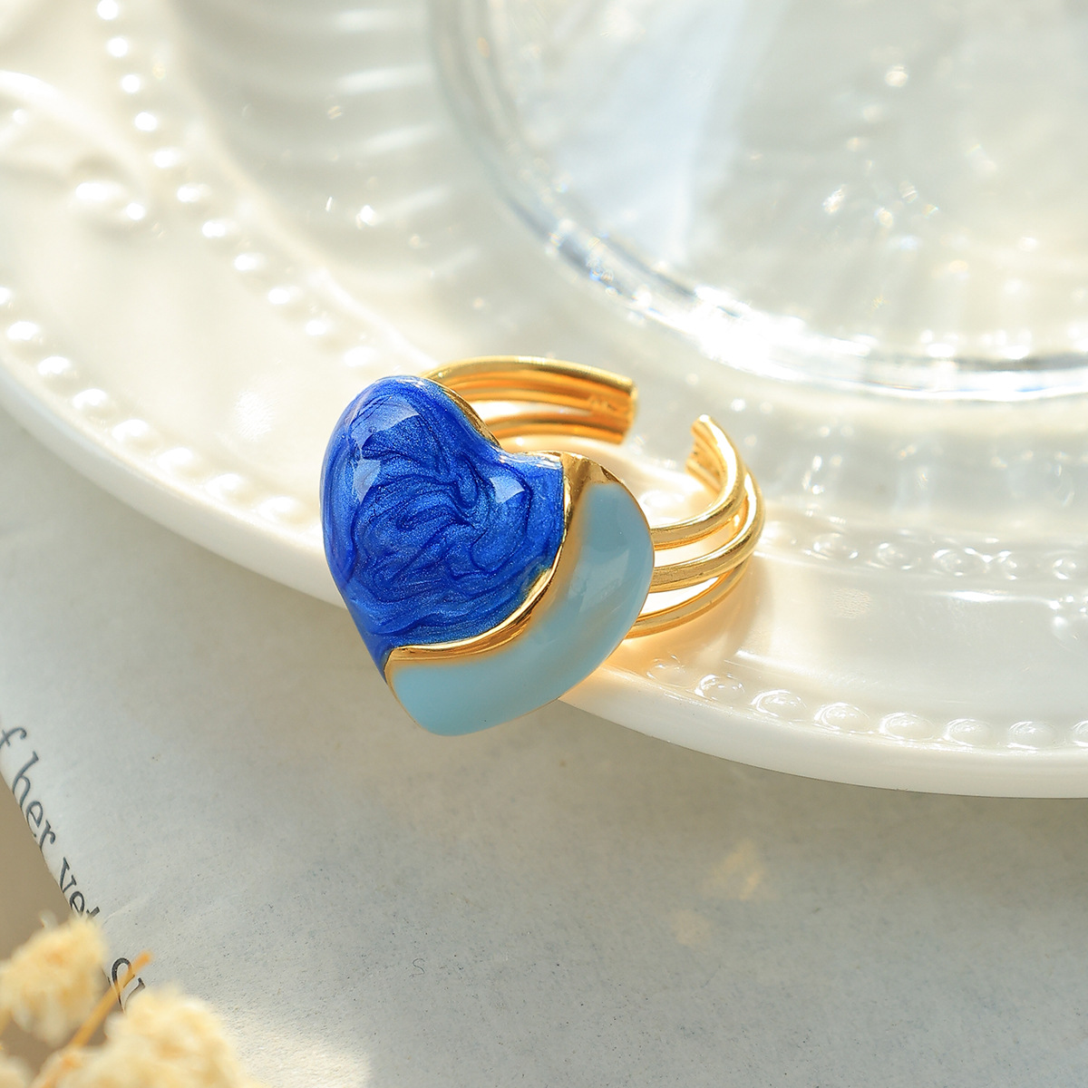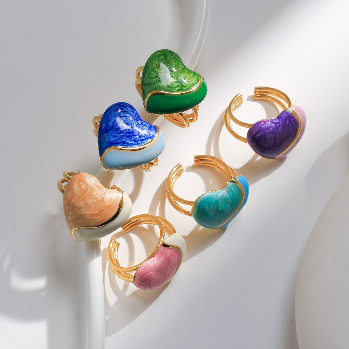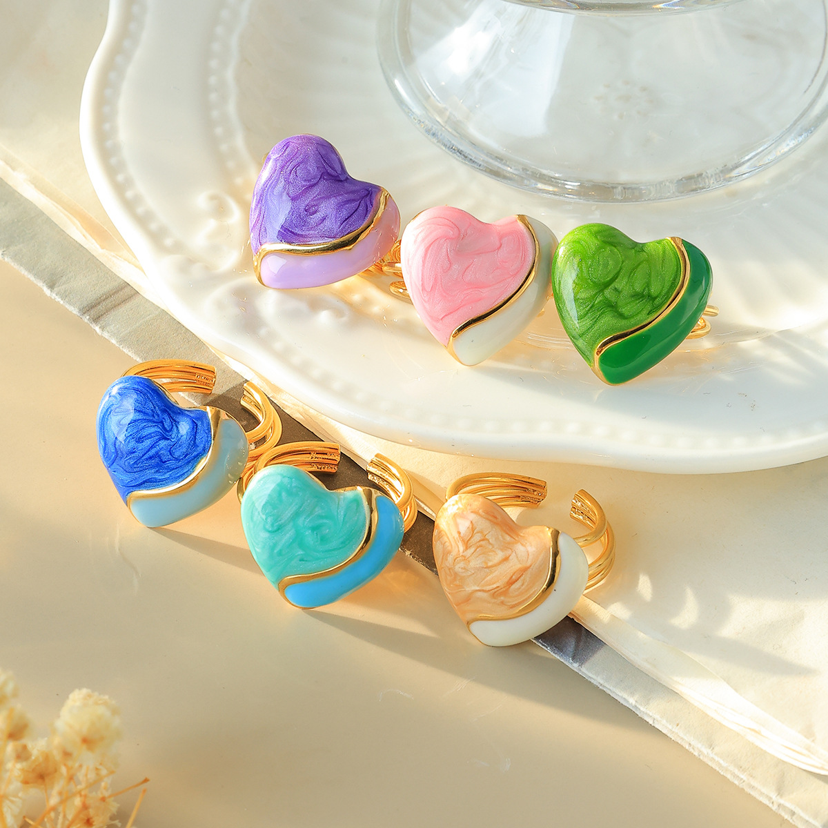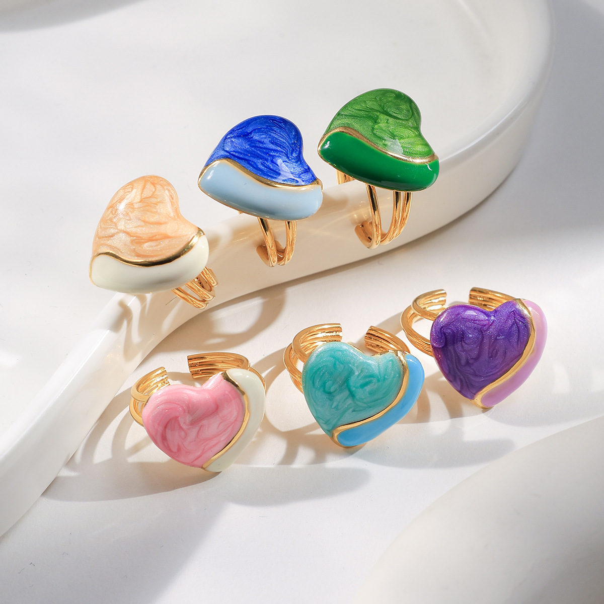 Esmalte de acero inoxidable anillo de dedo, acero inoxidable 304, Corazón, chapado en color dorado, Joyería, más colores para la opción, Vendido por UD