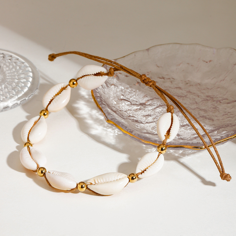Tobillera de joyería de moda, Nácar, con Cordón de cera & acero inoxidable 304, para mujer, longitud:13.38 Inch, Vendido por UD