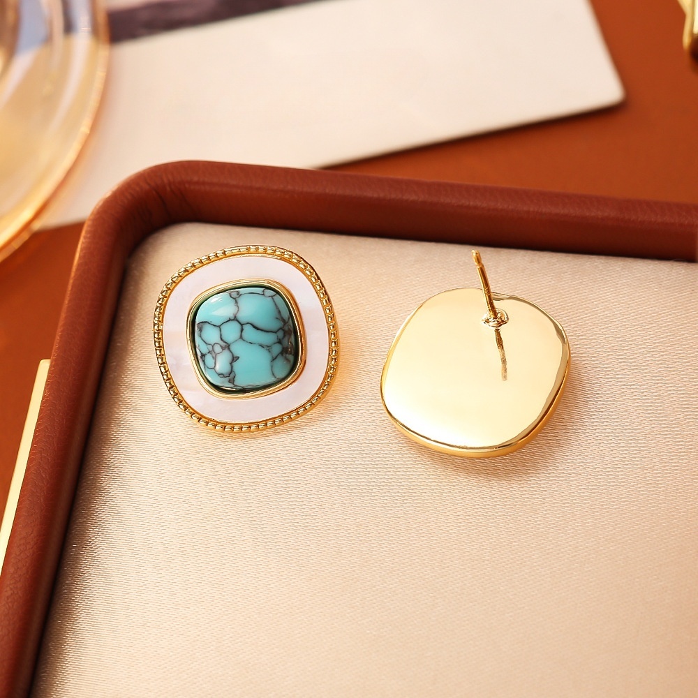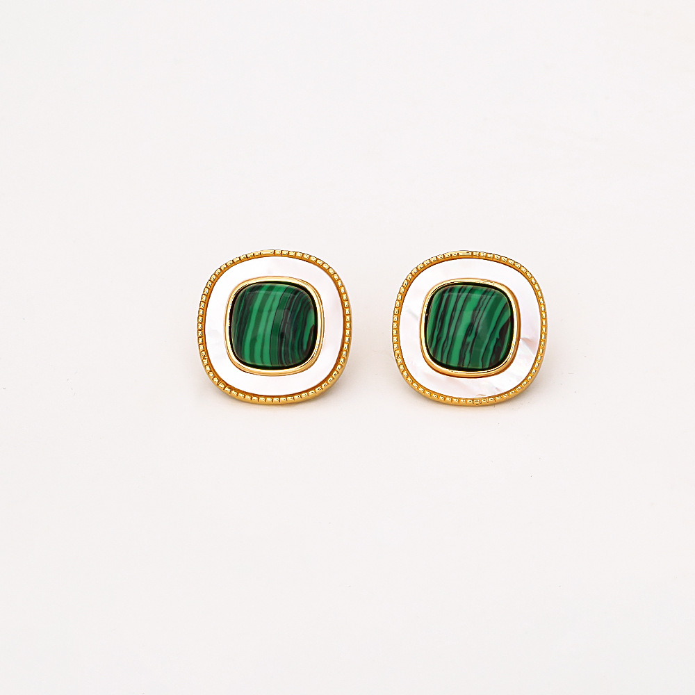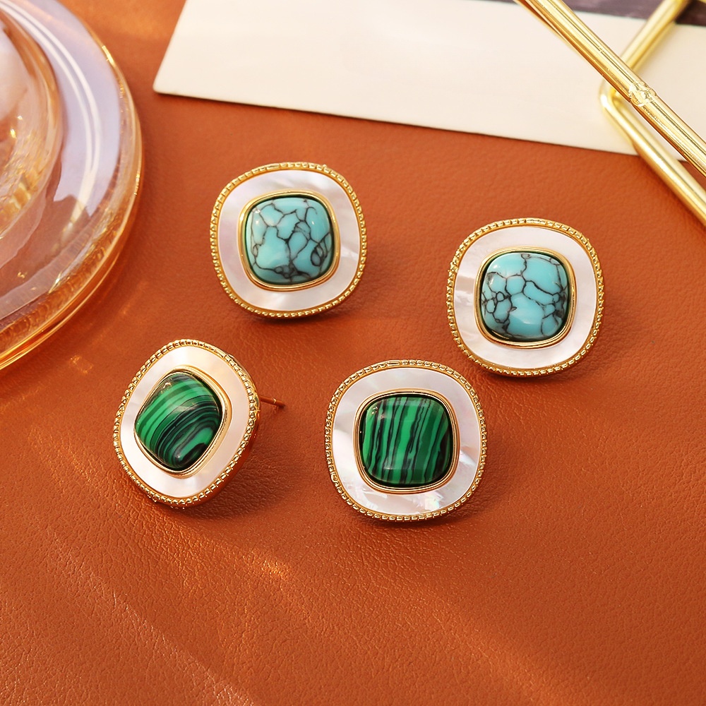 Gemstone Stud Earring, metal, con Ostra Perla & Malachita & Turquesa sintético, chapado en oro real, Joyería & para mujer, Vendido por Par