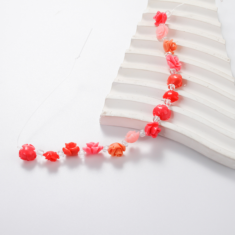 Granos de la resina de flor, Bricolaje, más colores para la opción, 7x7mm, longitud:38 cm, aproximado 55PCs/Sarta, Vendido por Sarta