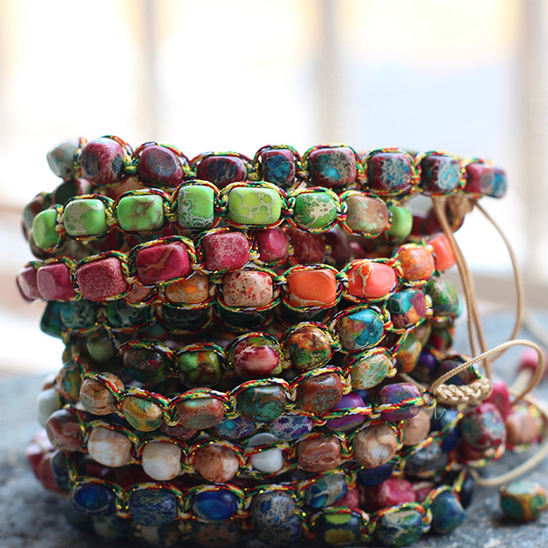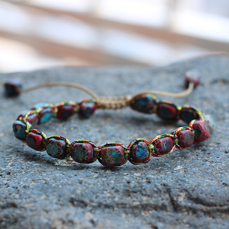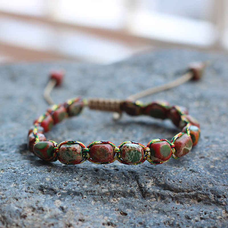 Jaspe Impresión Pulsera, con cordón de nylon, Pepitas, hecho a mano, unisexo & ajustable, más colores para la opción, beads length 5x7mm, diámetro interior:aproximado 15mm, Vendido por UD
