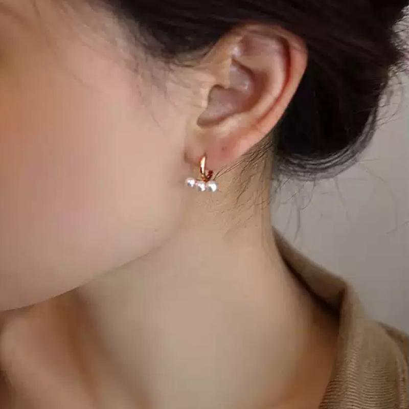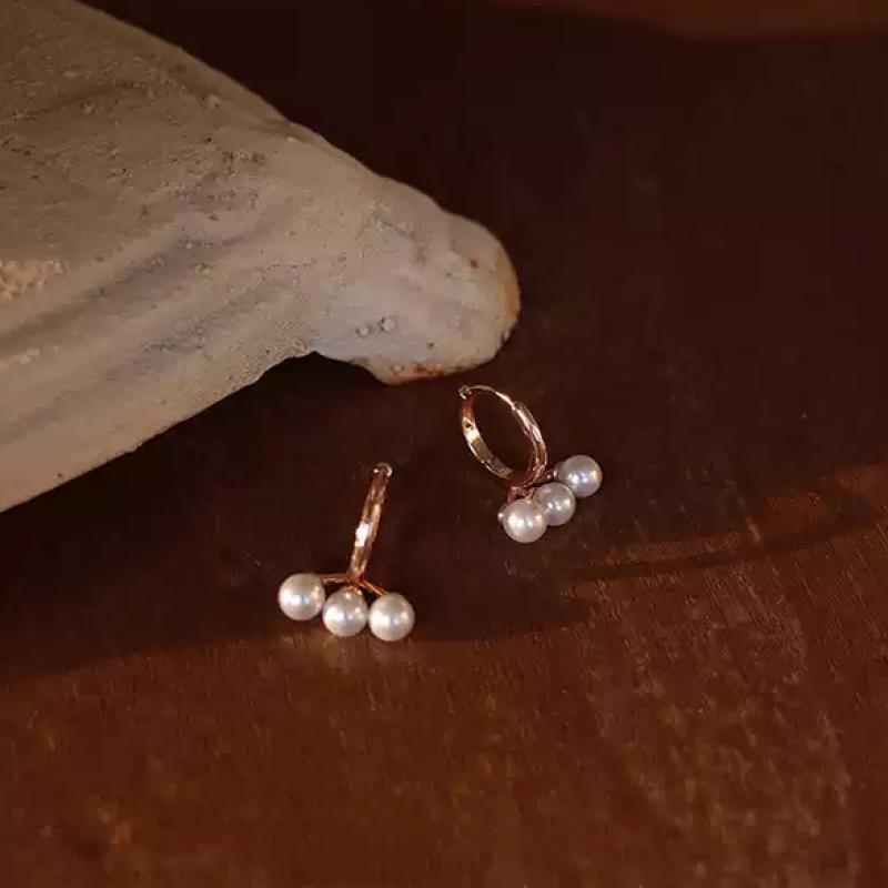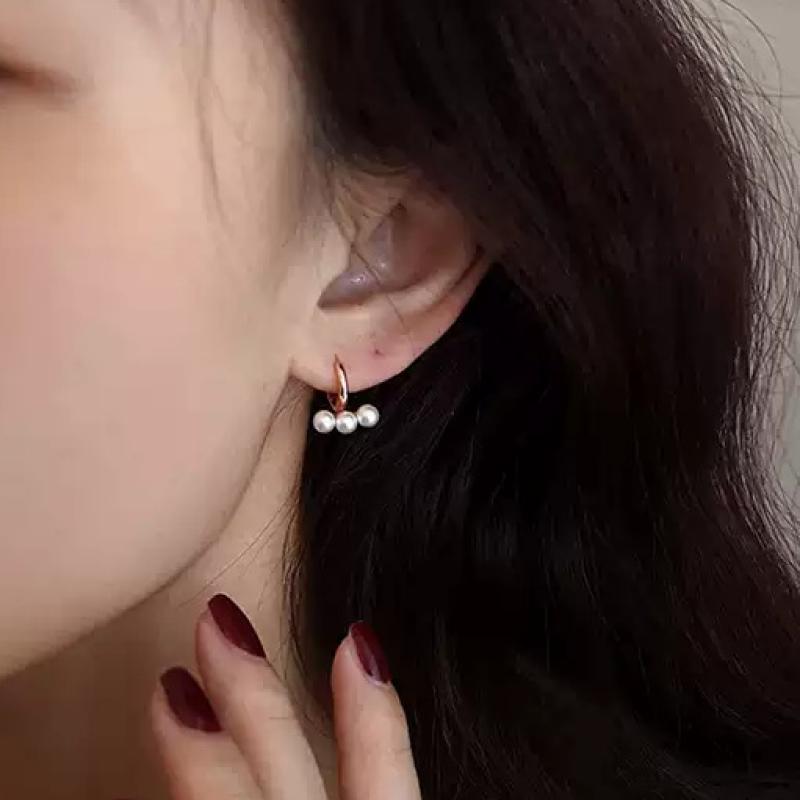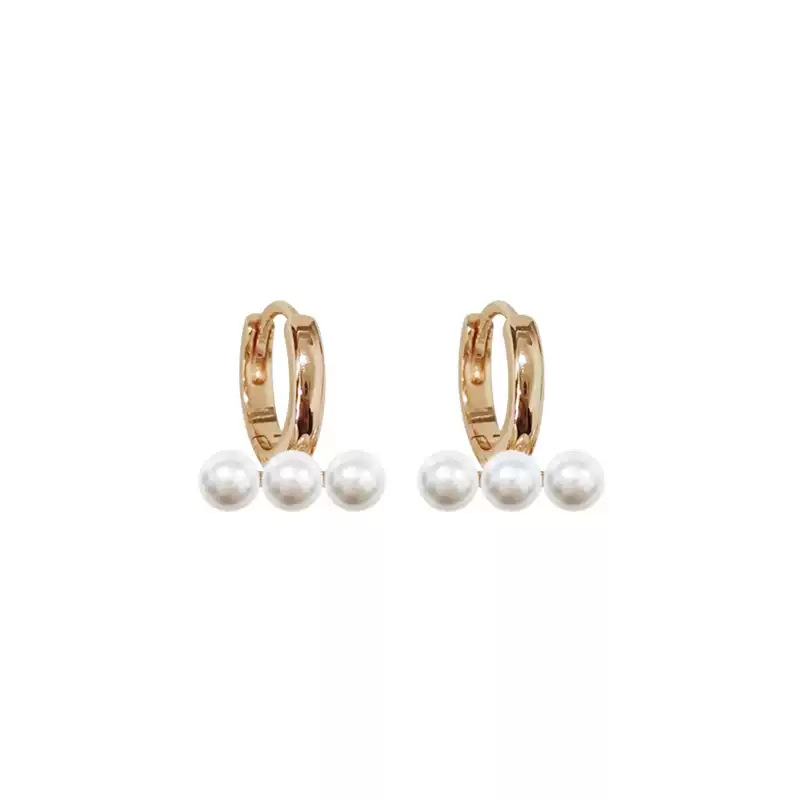 Latón Huggie pendiente del aro, metal, con Perlas plásticas, Joyería, color de rosa dorada, 11.6x13.6mm, Vendido por Par