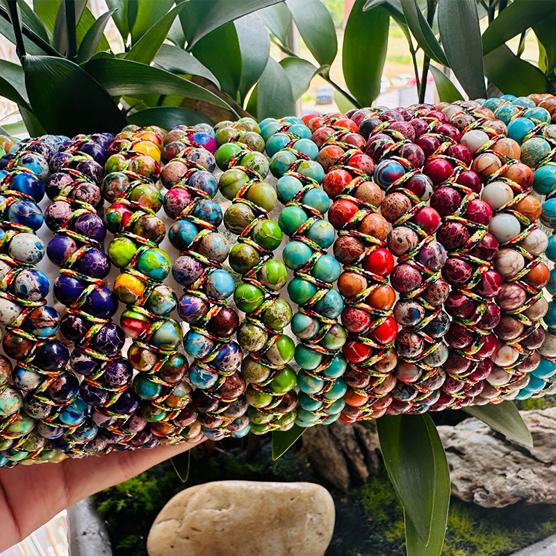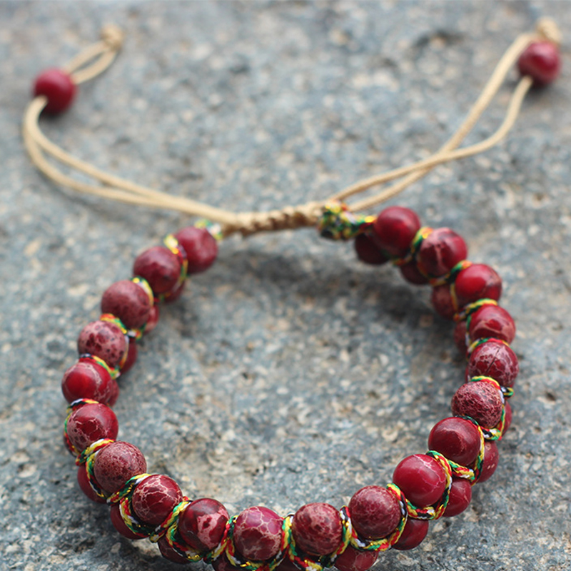 Impresión Jasper pulsera, Jaspe Impresión, con cordón de nylon, Esférico, Doble capa & unisexo, más colores para la opción, diámetro interior:aproximado 15mm, Vendido por UD