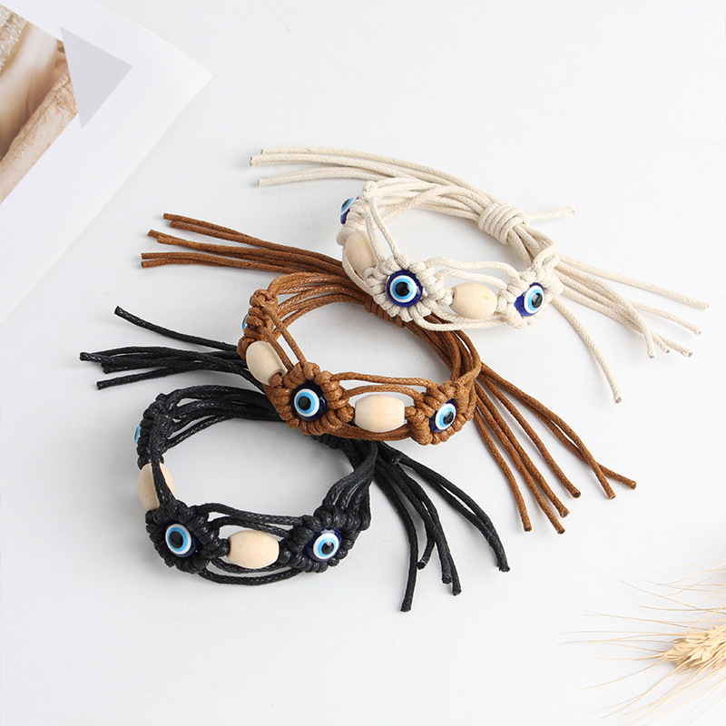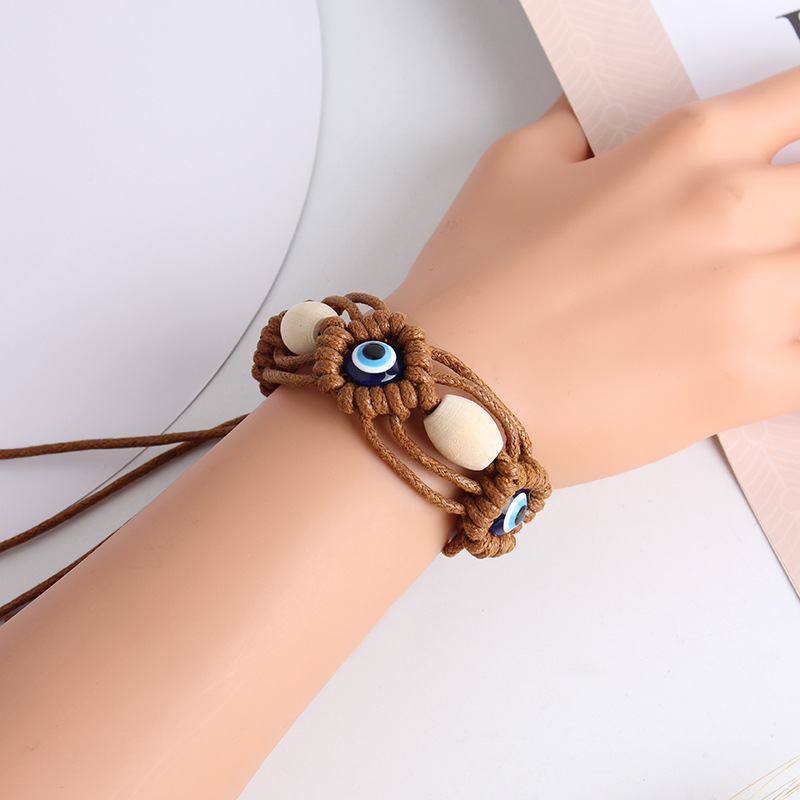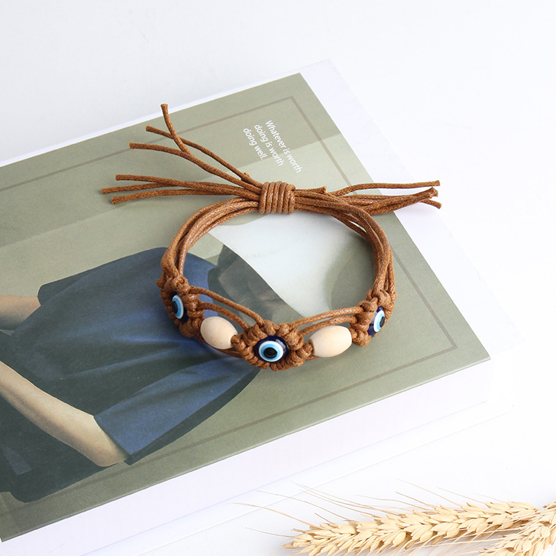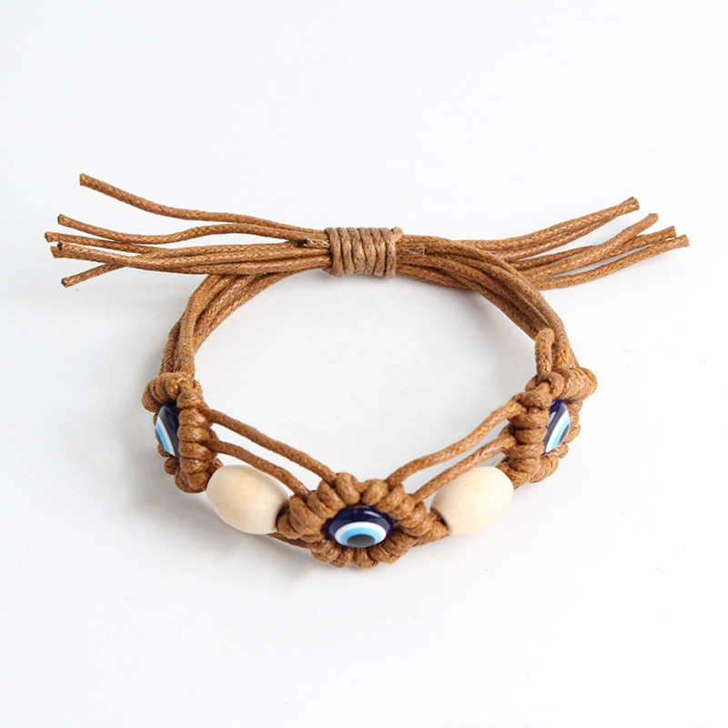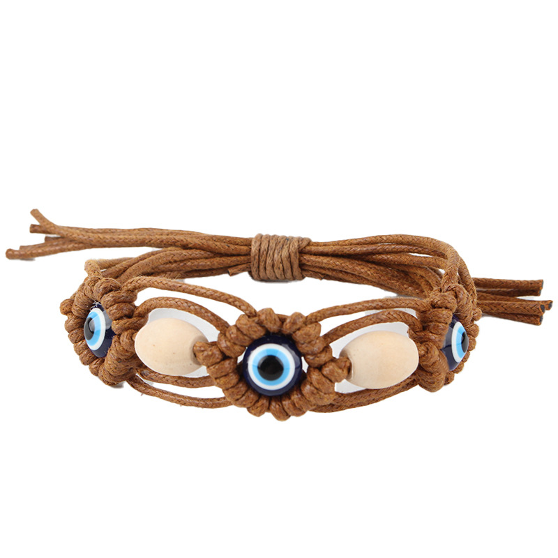Mal pulsera ojo, Cordón de cera, con madera & resina, chapado en color dorado, Joyería, más colores para la opción, Vendido por UD