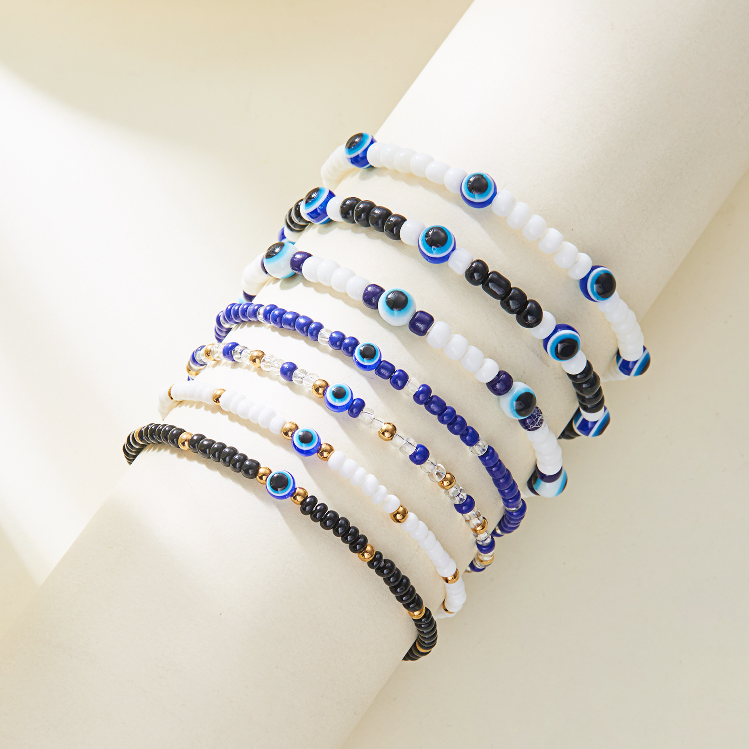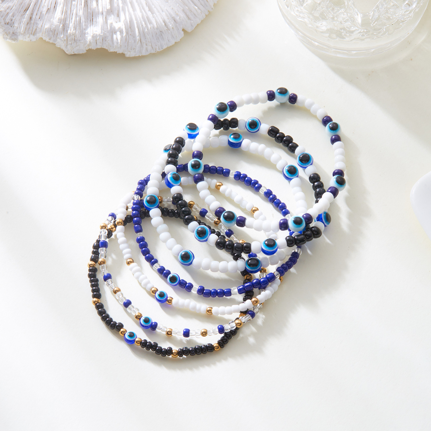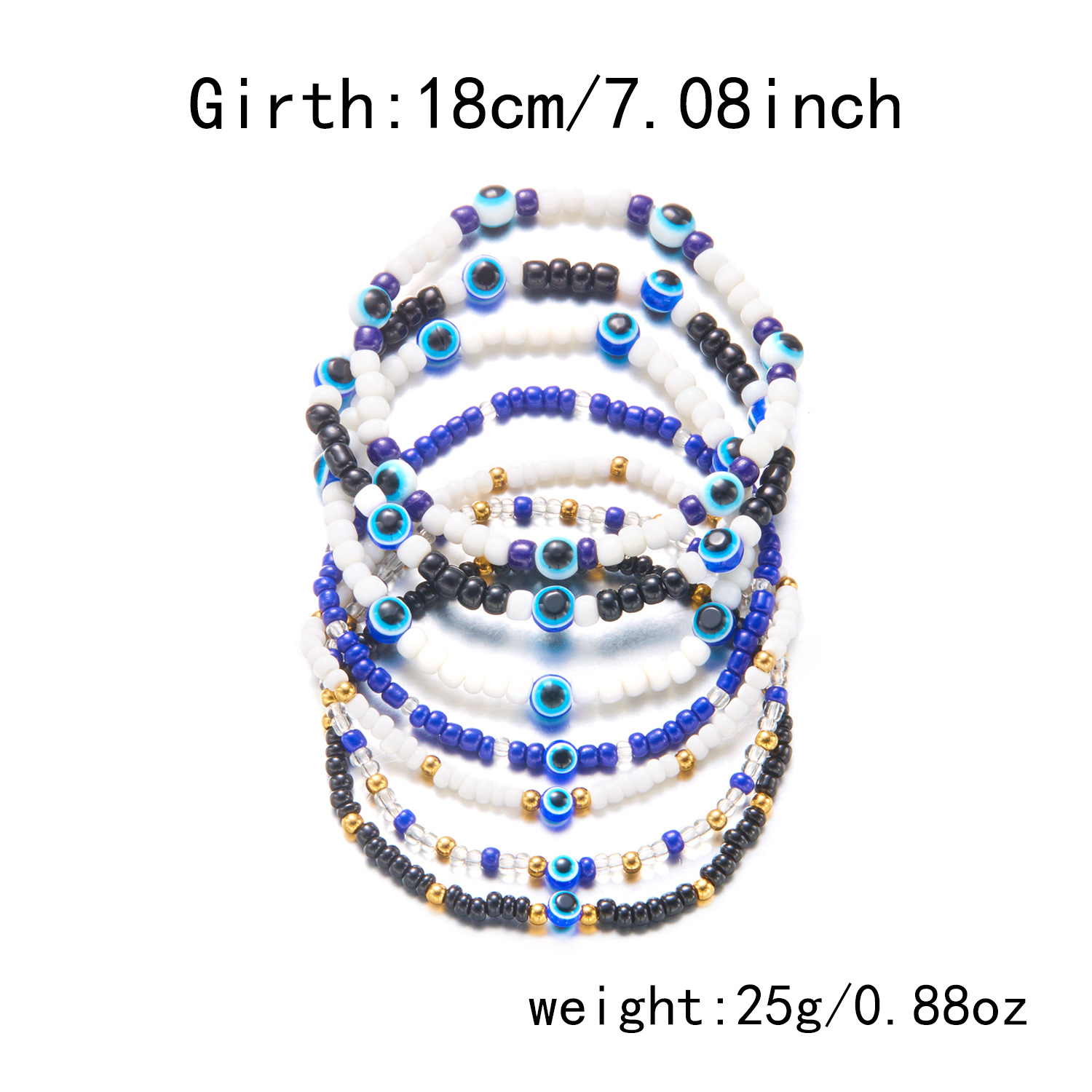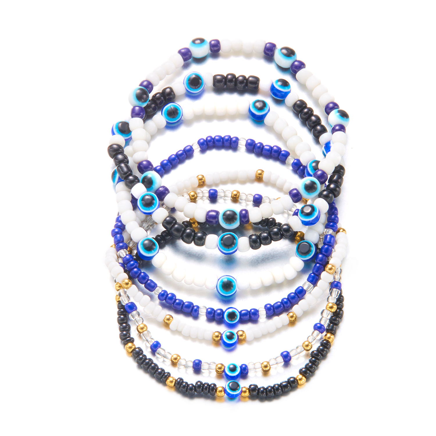 Mal pulsera ojo, resina, con Seedbead & aleación de zinc, chapado en color dorado, Joyería, más colores para la opción, 7PCs/Set, Vendido por Set