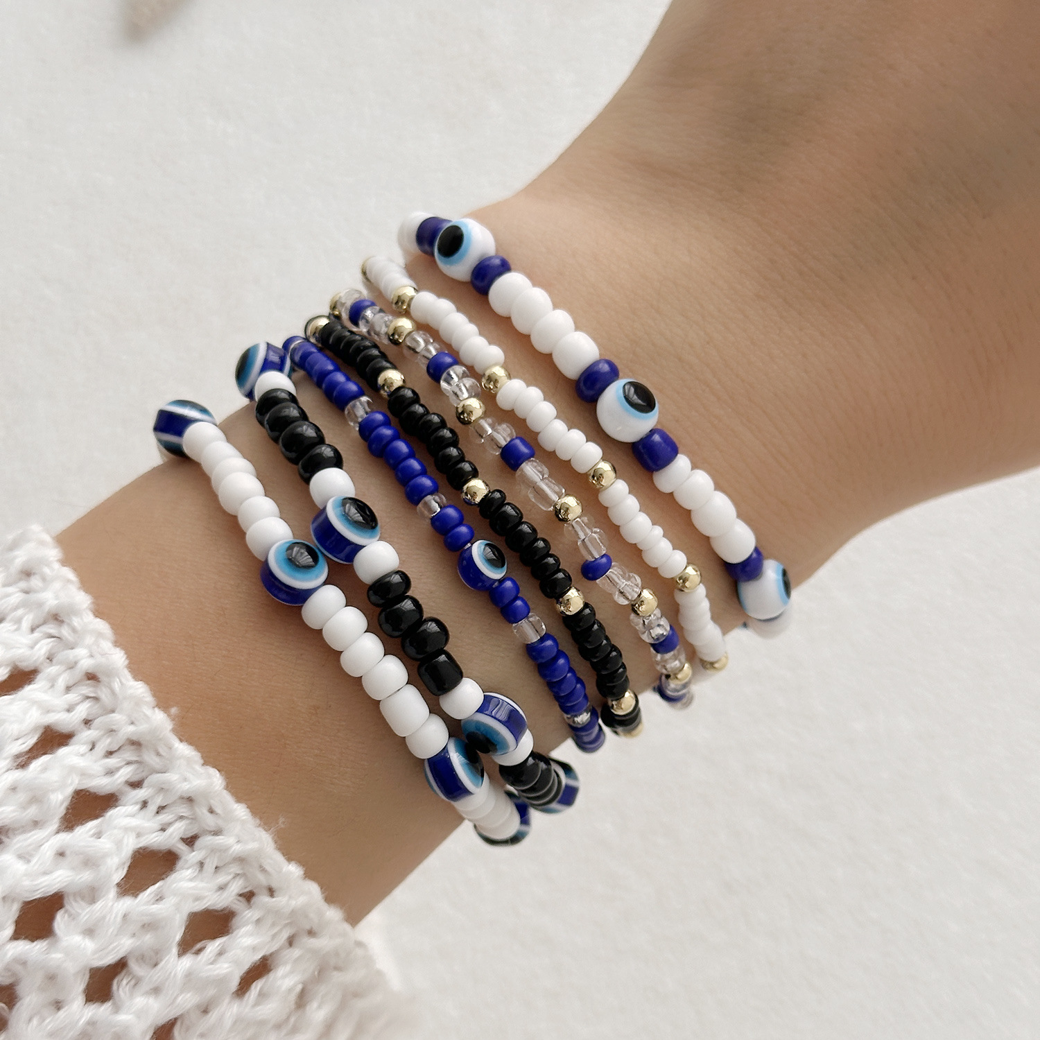 Mal pulsera ojo, Seedbead, con Hilo elástico, hecho a mano, Joyería & patrón de malvado de ojo & para mujer, más colores para la opción, longitud:aproximado 17 cm, Vendido por UD