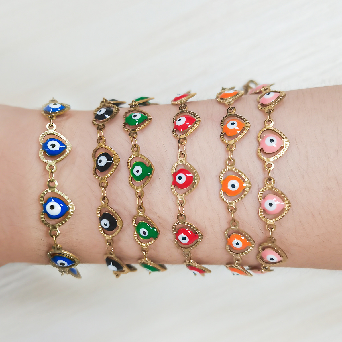 Mal pulsera ojo, acero inoxidable 304, Corazón, chapado en color dorado, Joyería & esmalte, más colores para la opción, 5mm, longitud:22 cm, Vendido por UD