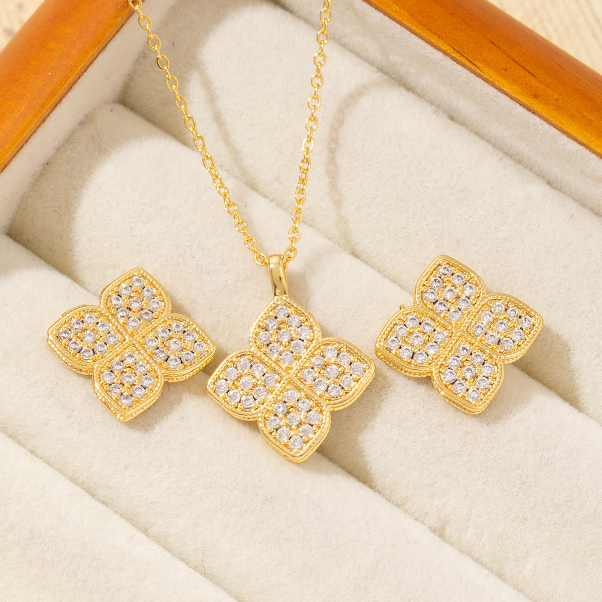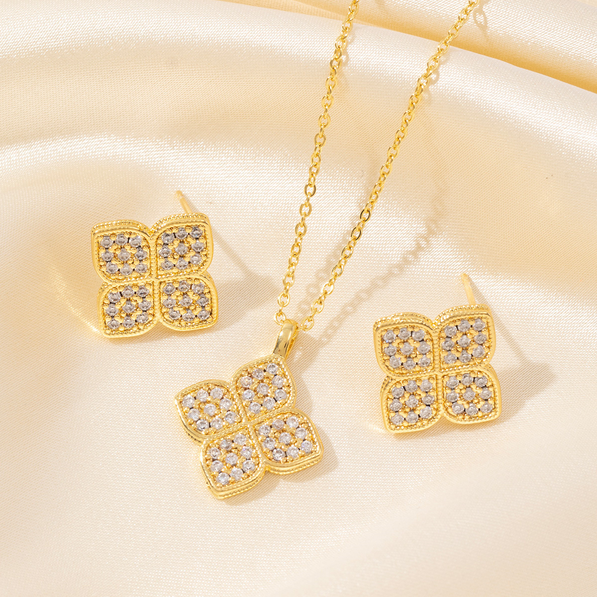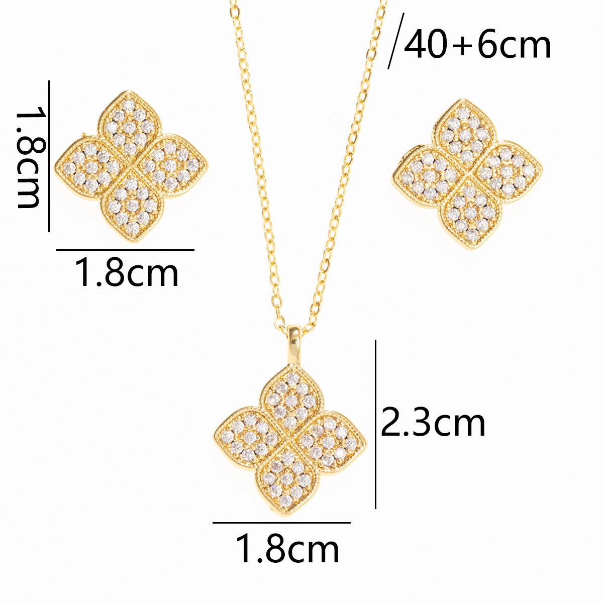 Micro cúbicos Circonia allanar sistemas de la joyería de cobre amarillo, metal, Trébol de cuatro hojas, chapado en oro de 14 K, micro arcilla de zirconia cúbica & para mujer, Vendido por Set