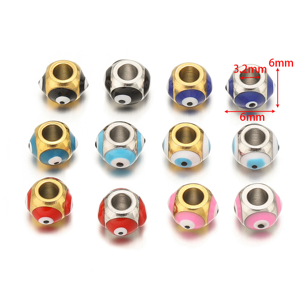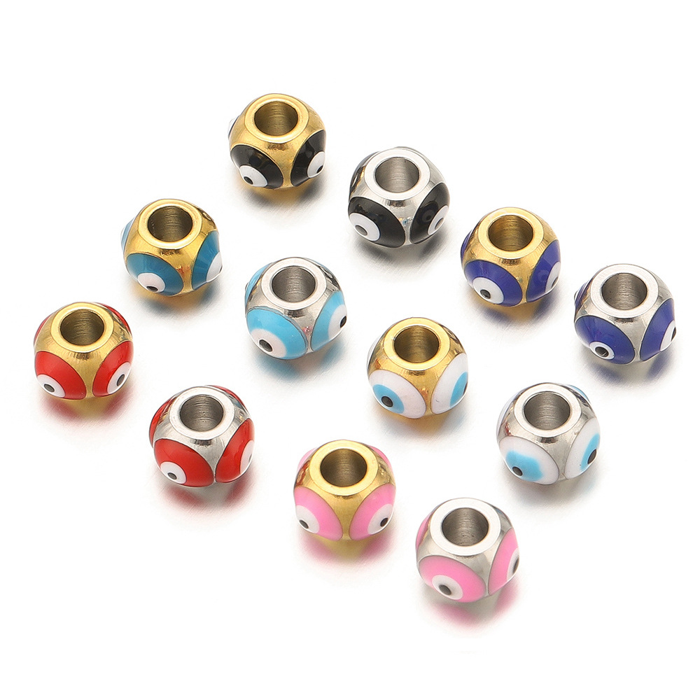 Moda bolas de mal de ojo, acero inoxidable 304, chapado en color dorado, Bricolaje & esmalte, más colores para la opción, 10PCs/Bolsa, Vendido por Bolsa