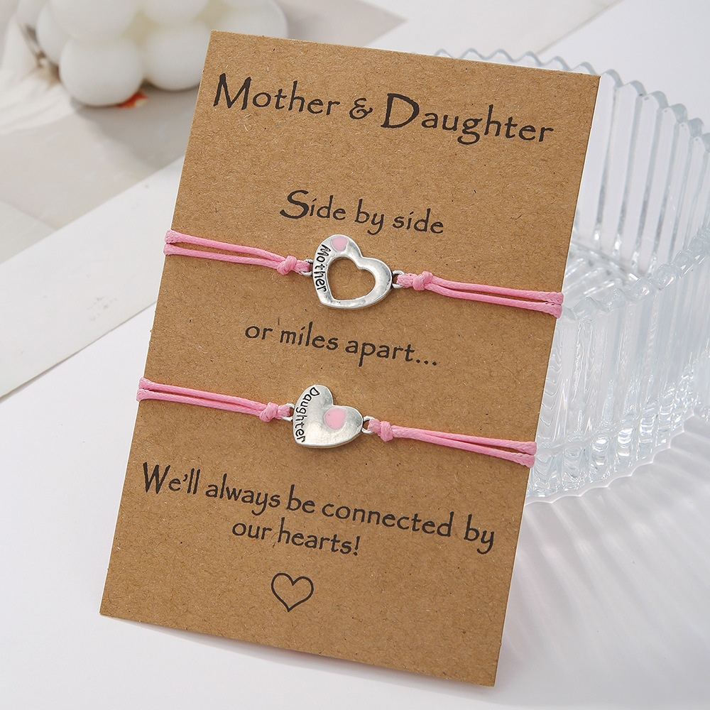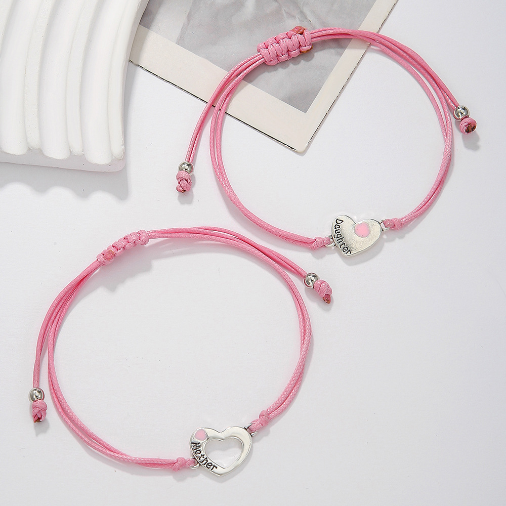 Moda crear pulseras de cordón de cera, aleación de zinc, con Cordón de cera, hecho a mano, 2 piezas & para mujer & esmalte, Rosado, Vendido por Set