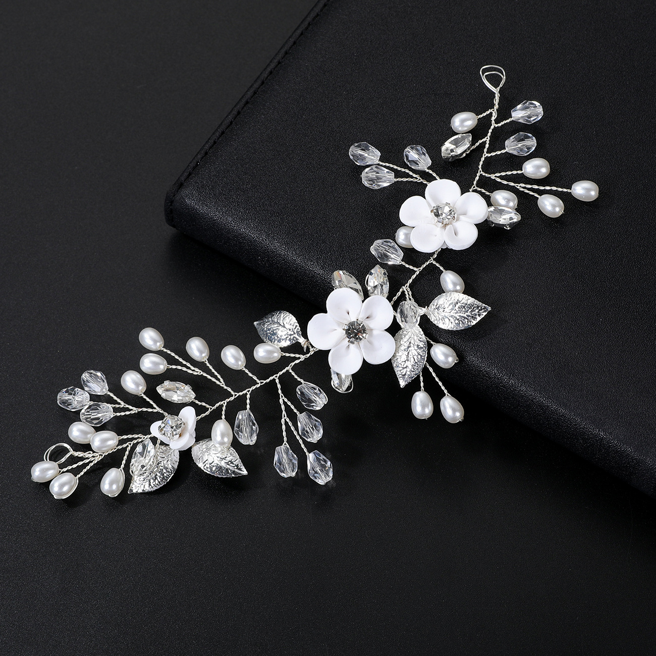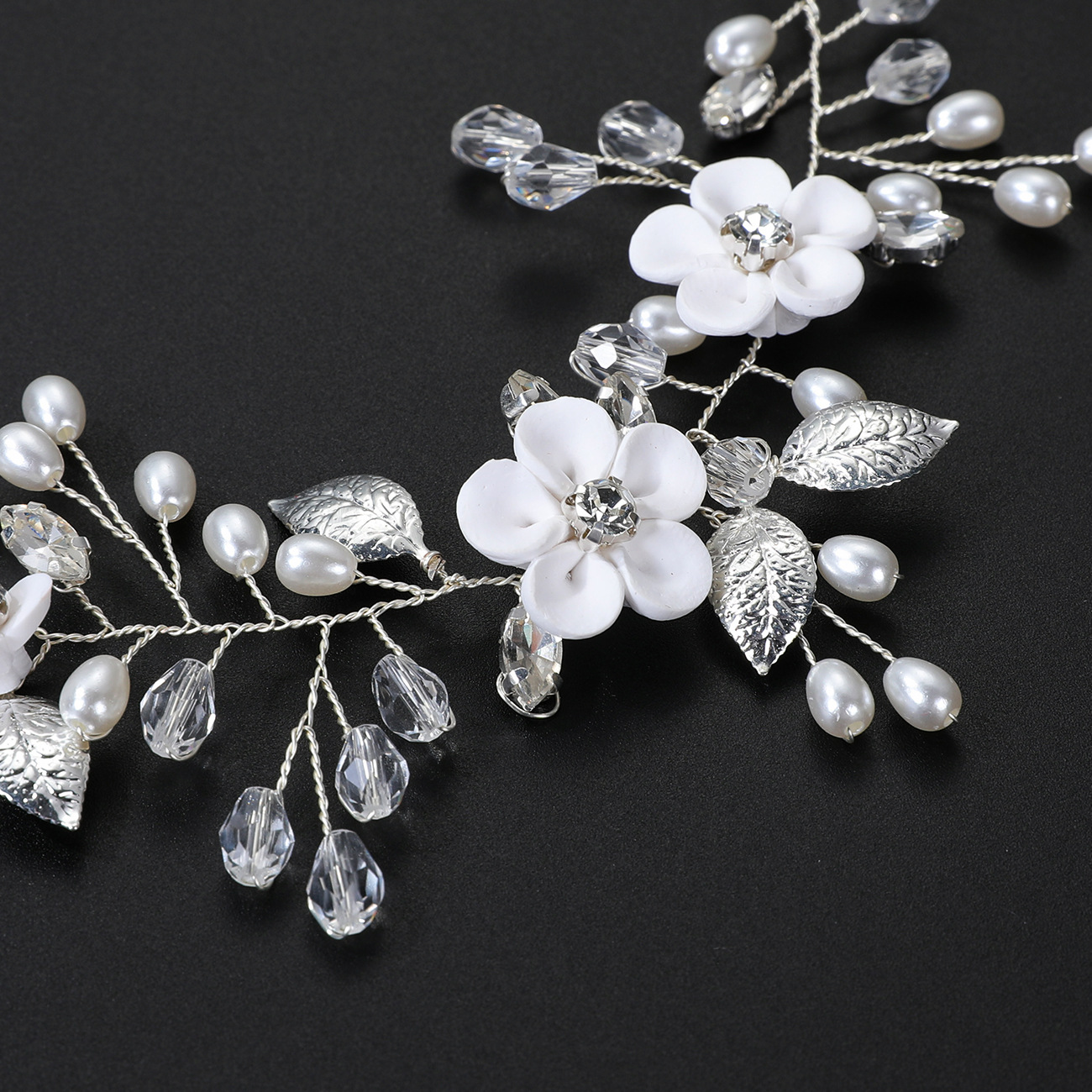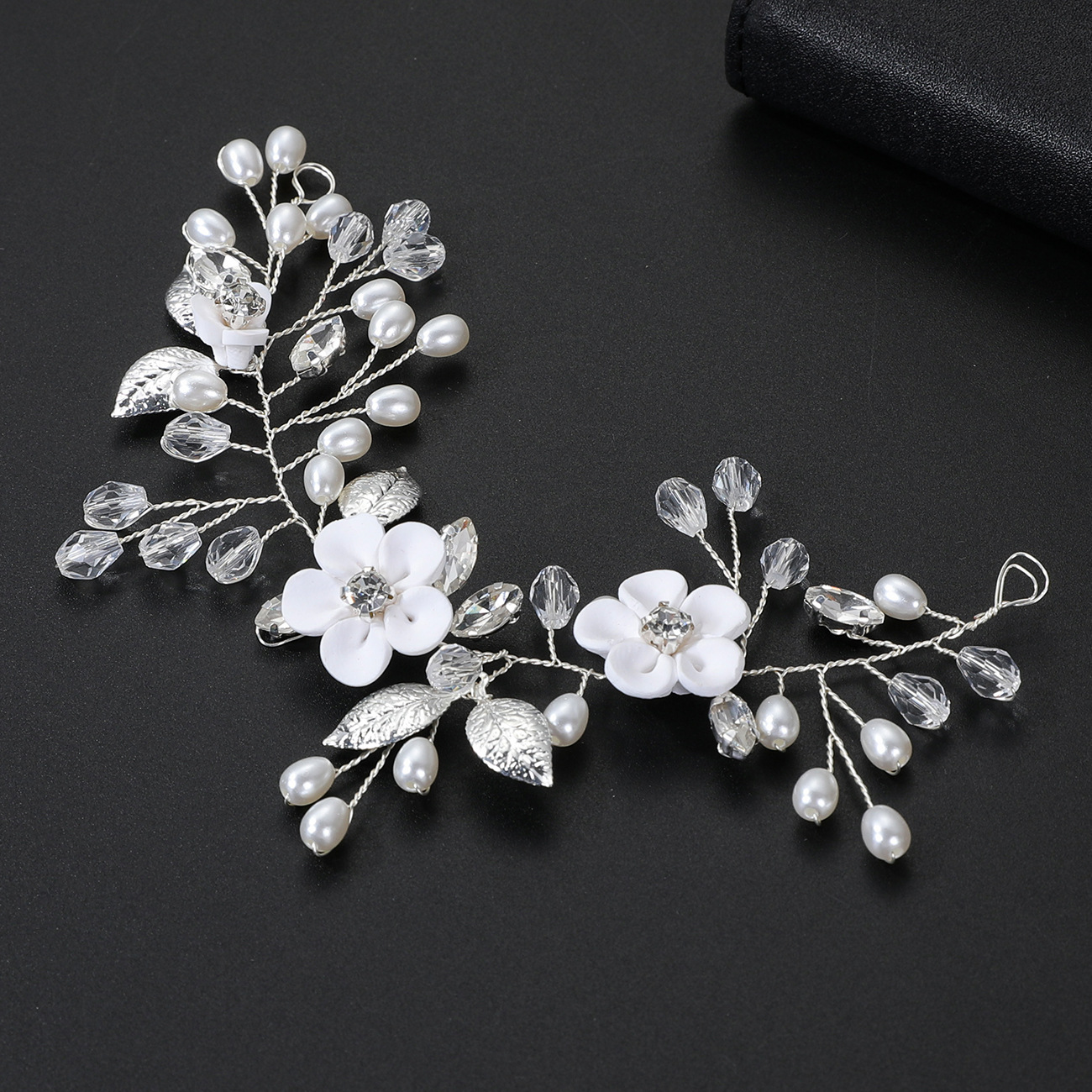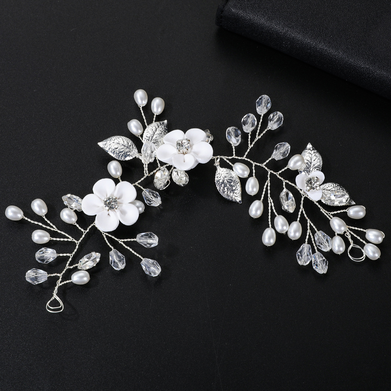 Guirnalda para el Pelo, aleación de zinc, con alambre de latón & Arcilla polimero & Cristal & diamantes de imitación & Perlas plásticas, hecho a mano, Joyería & para mujer, plateado, 130x70x10mm, Vendido por UD