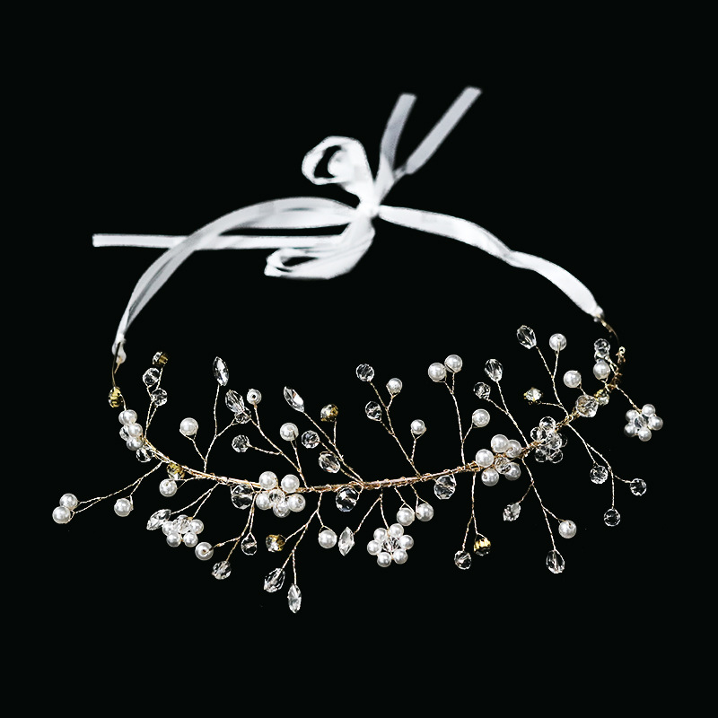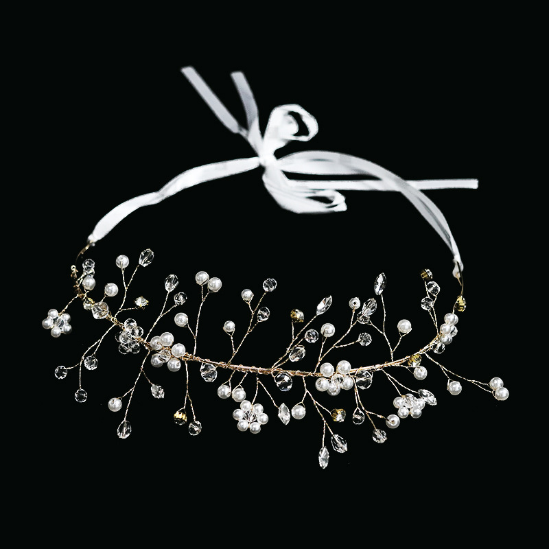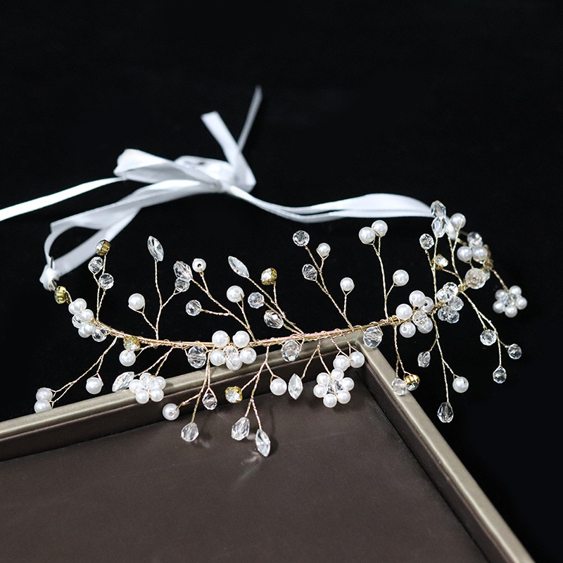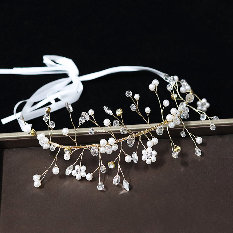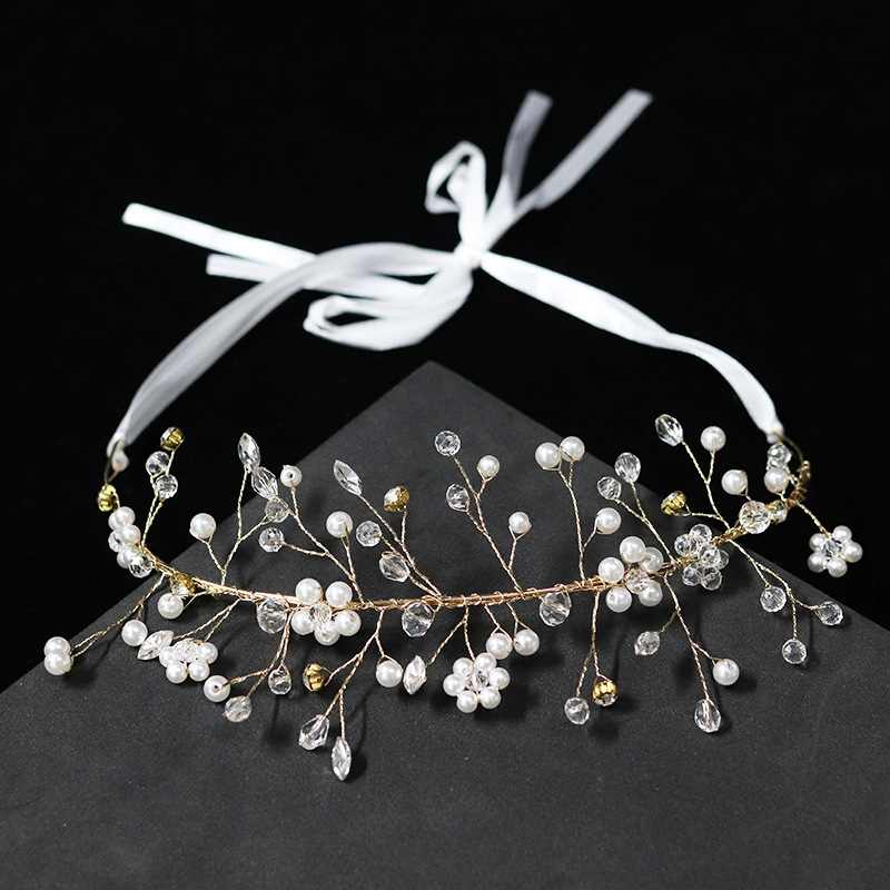 Guirnalda para el Pelo, Perlas plásticas, con alambre de latón & Cristal, hecho a mano, Joyería & para mujer, dorado, 380x30x30mm, Vendido por UD