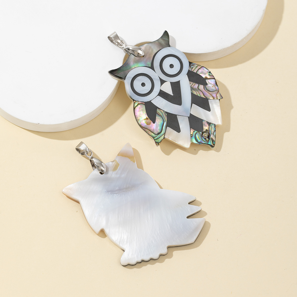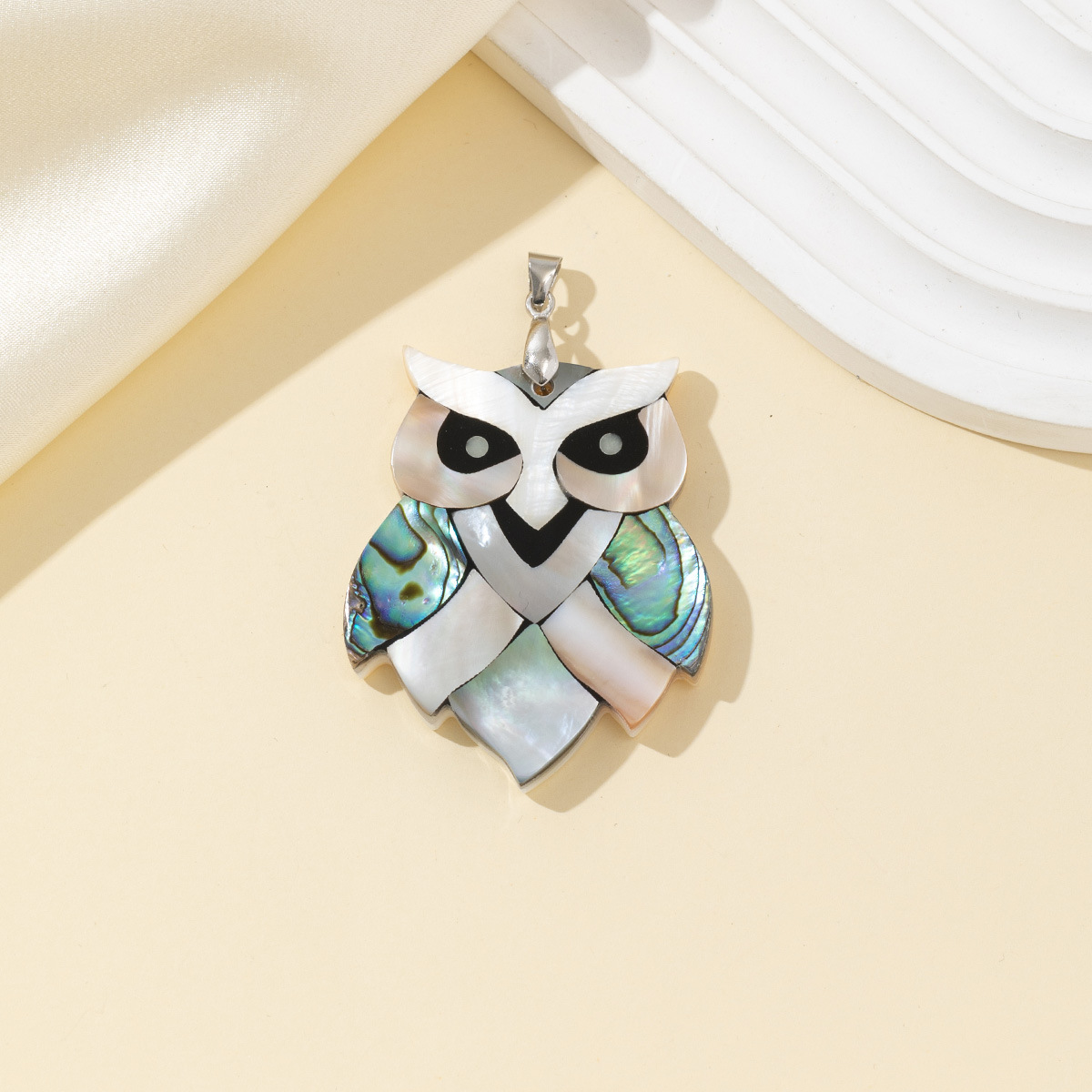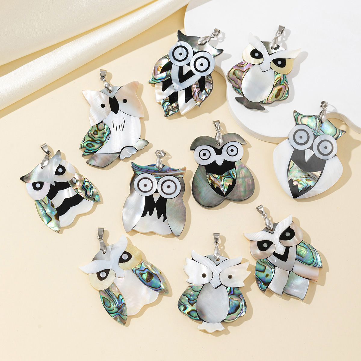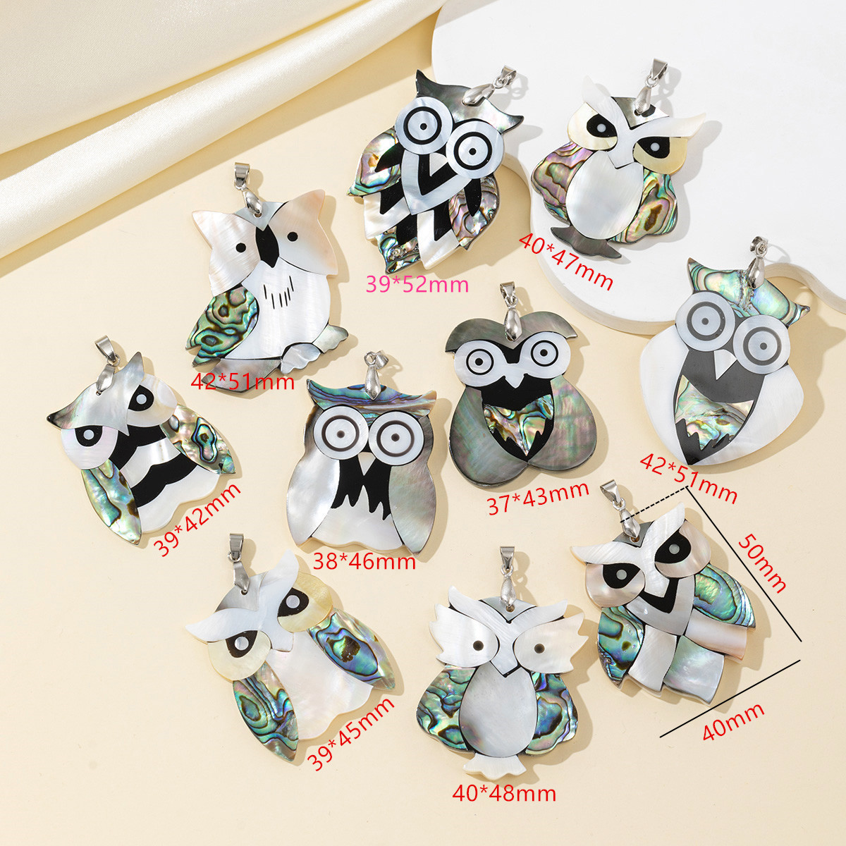 Colgante de concha de abulón, Nácar, con Nácar de Abulón & acero inoxidable 304, Búho, chapado, Bricolaje, más colores para la opción, Vendido por UD