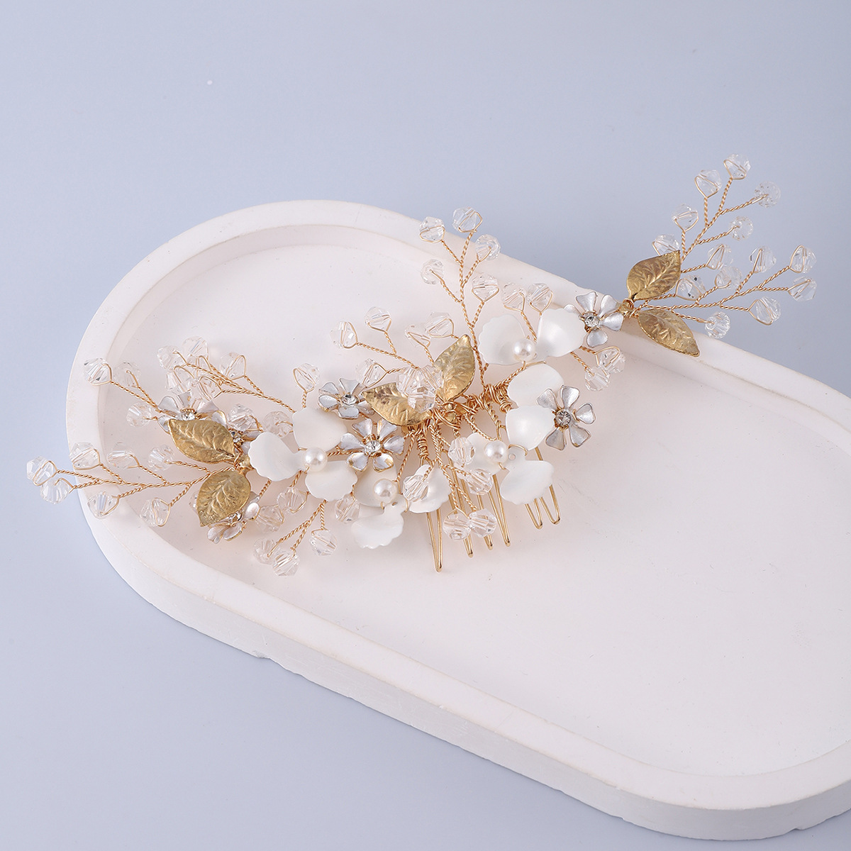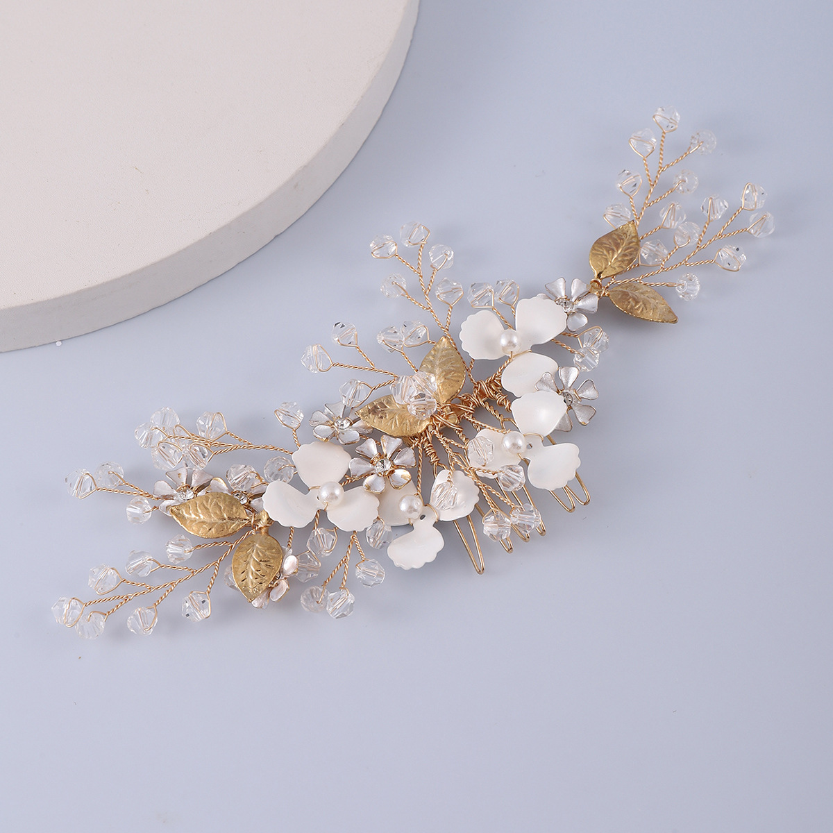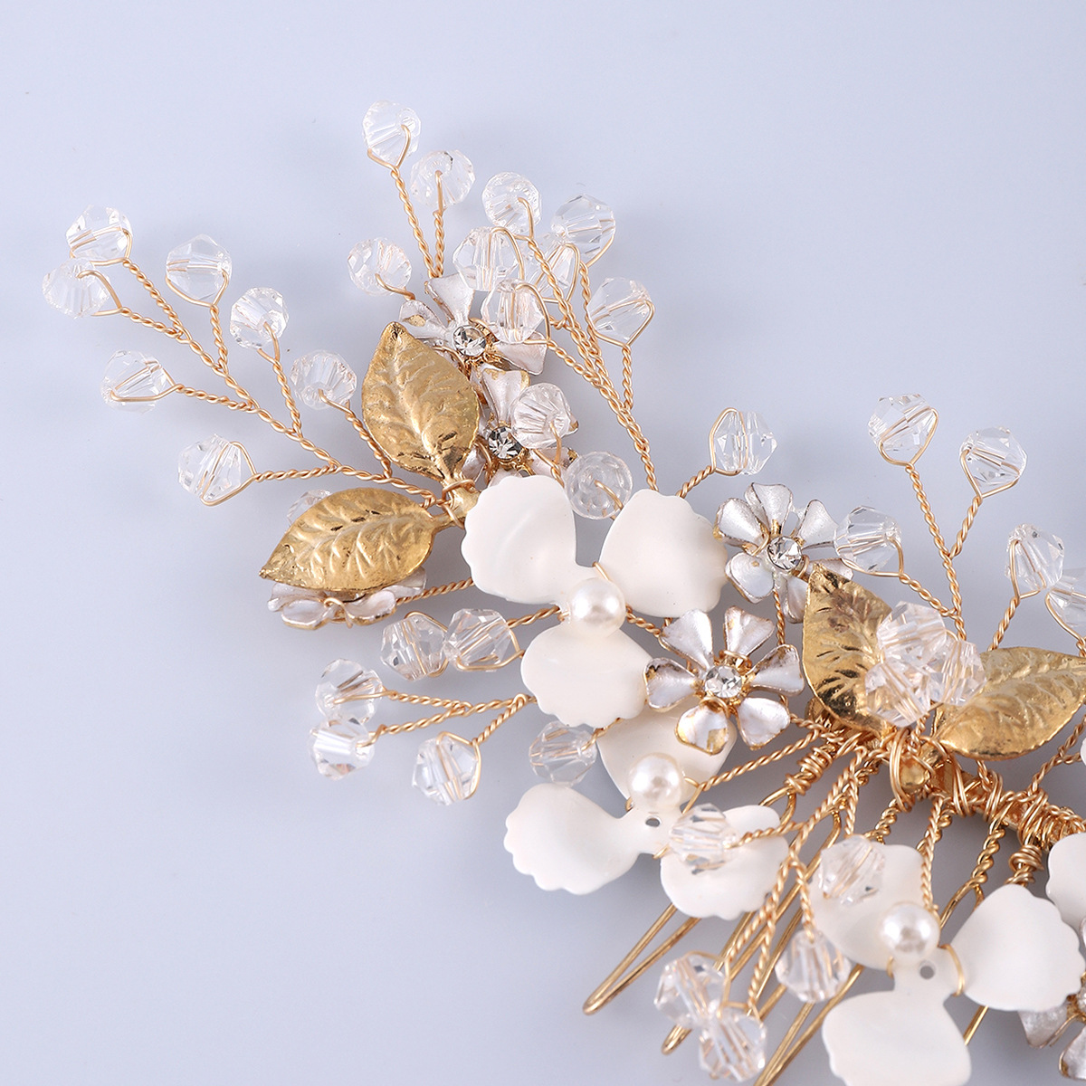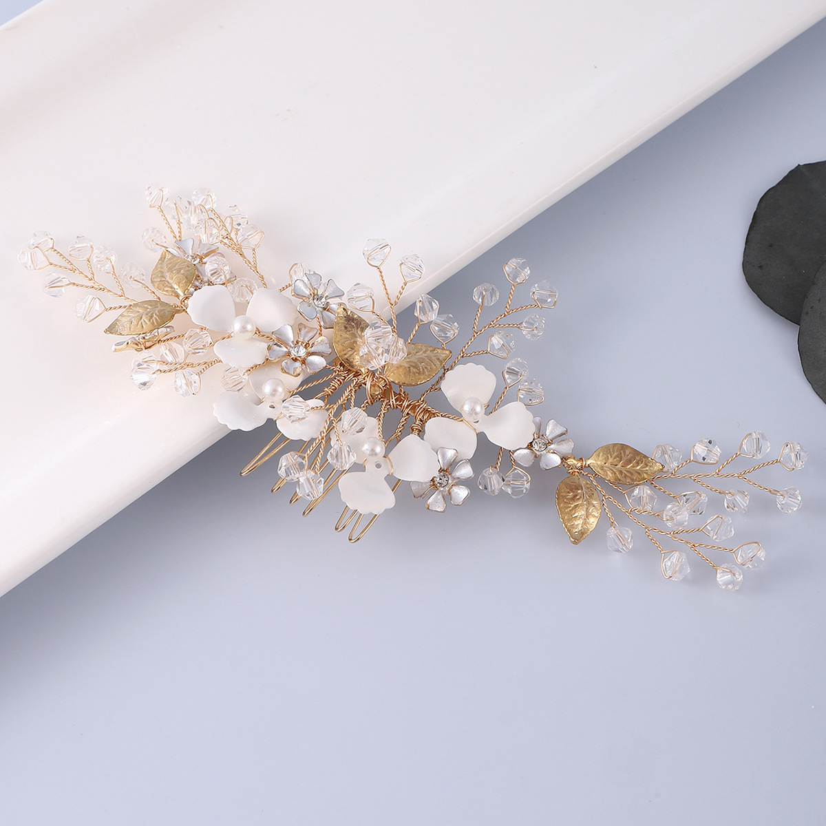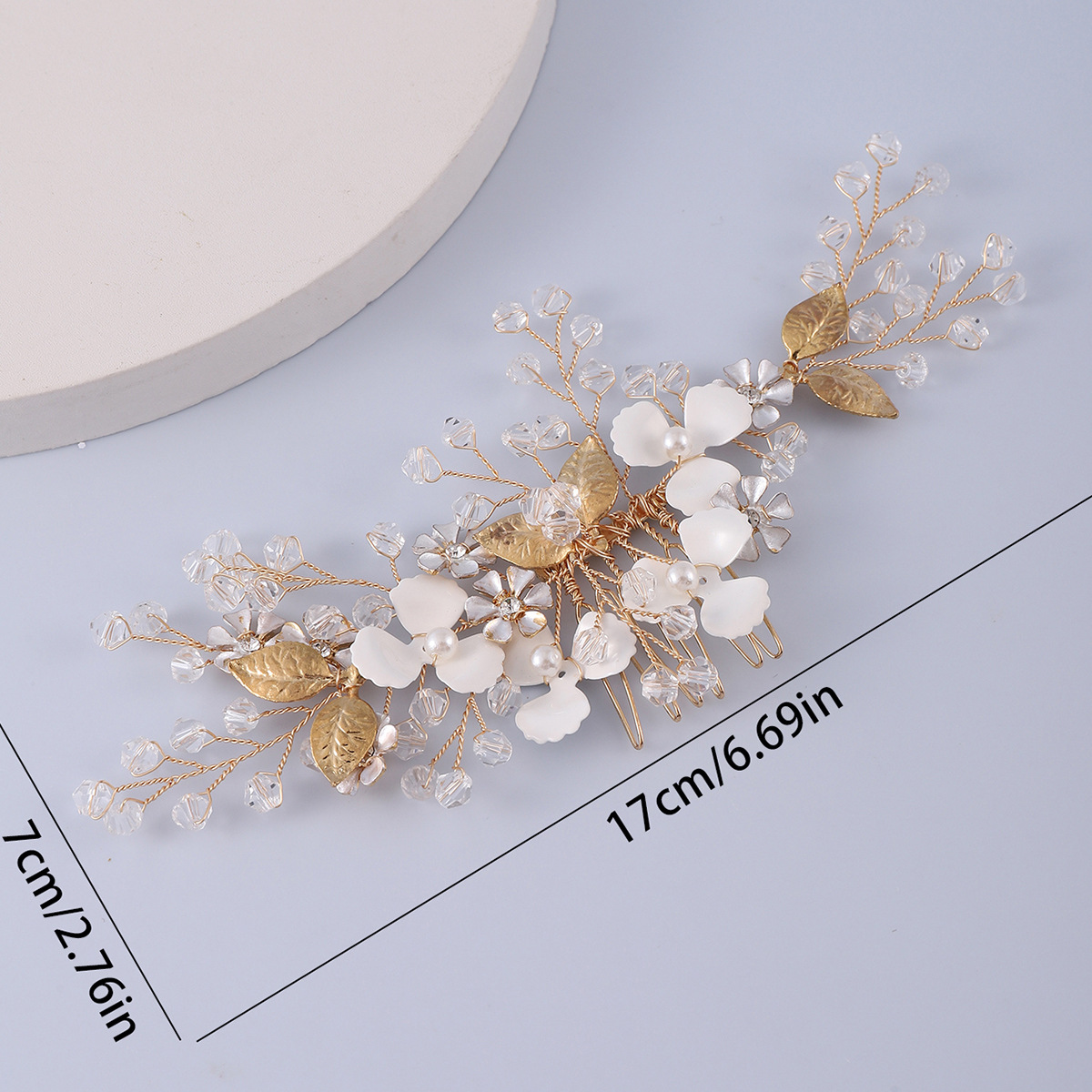 Peinetas Decorativas, aleación de zinc, con alambre de latón & Arcilla polimero & Cristal, hecho a mano, Joyería & para mujer & con diamantes de imitación, dorado, Vendido por UD