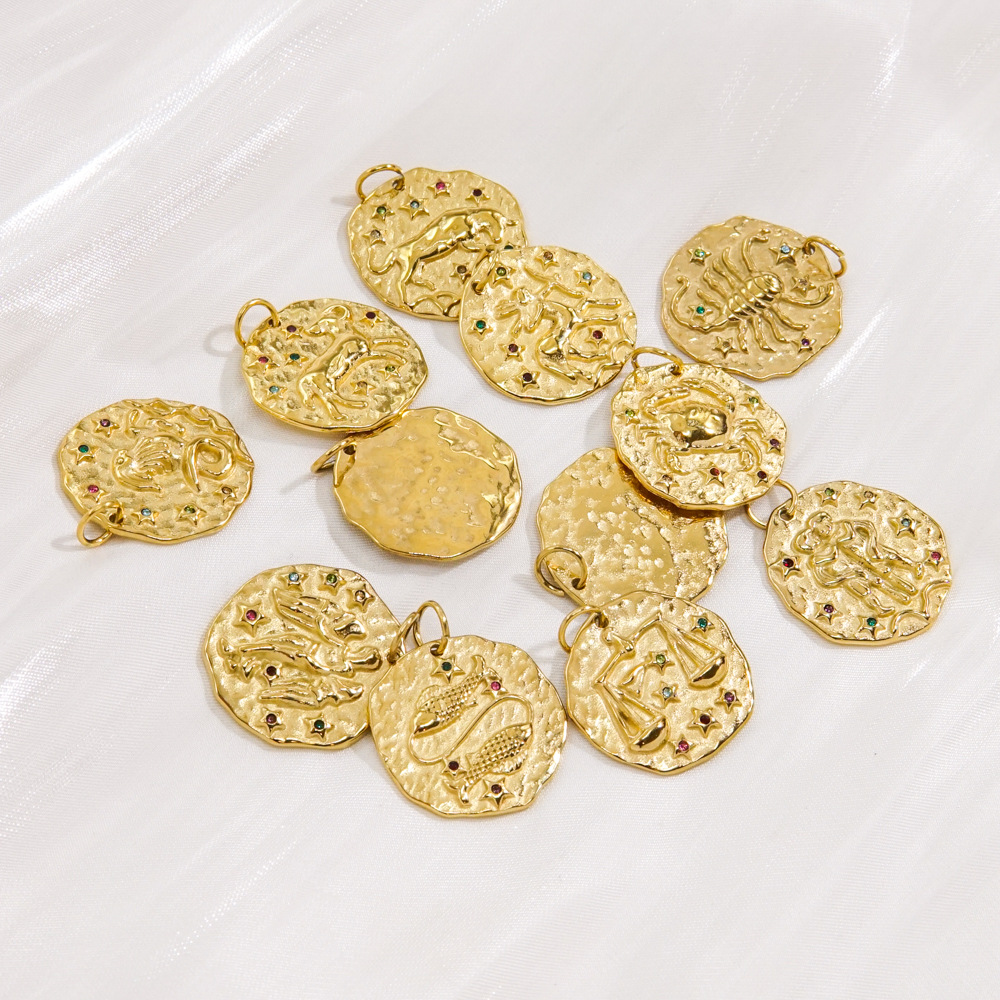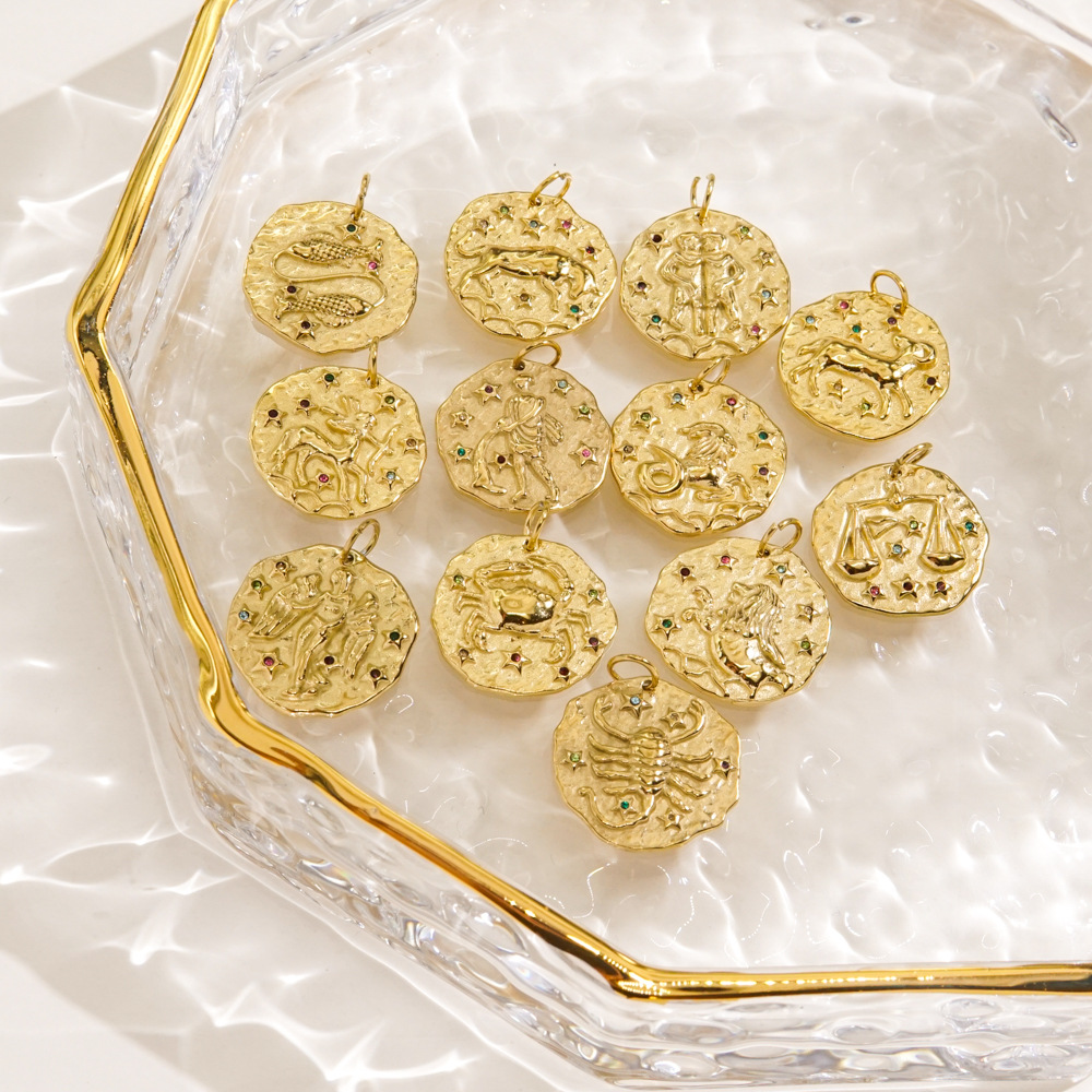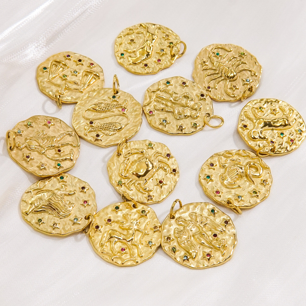 Pendiente de constelación de acero inoxidable , acero inoxidable 304, 12 Signos del Zodíaco, Recubrimiento iónico al vacío, Bricolaje & con diamantes de imitación, más colores para la opción, 22x22mm, Vendido por UD