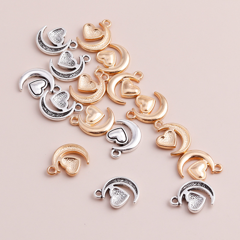 Colgantes de Aleación de Zinc en Forma de Corazón, Luna, chapado, Bricolaje, más colores para la opción, 20PCs/Bolsa, Vendido por Bolsa
