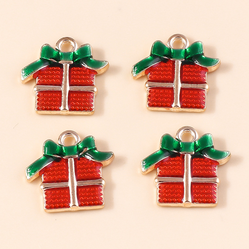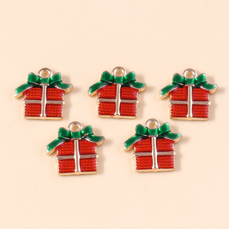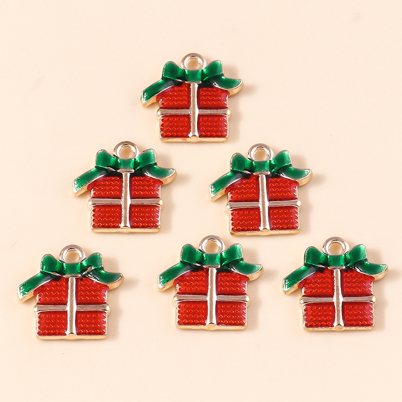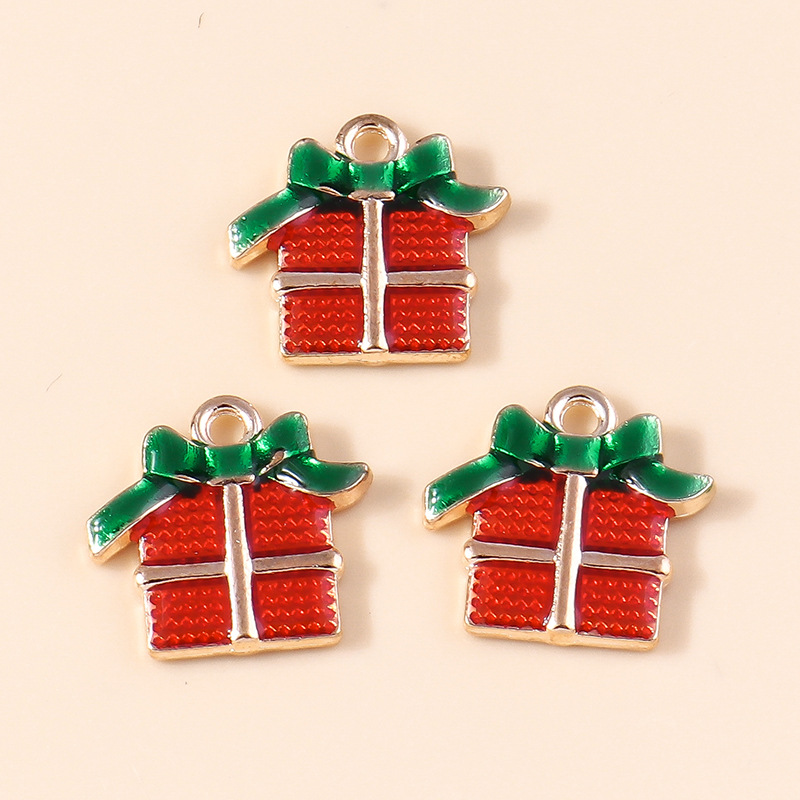 Colgantes de Navidad de aleación de cinc, aleación de zinc, forma de regalo, chapado, Diseño de Navidad & Bricolaje & esmalte, 10PCs/Bolsa, Vendido por Bolsa