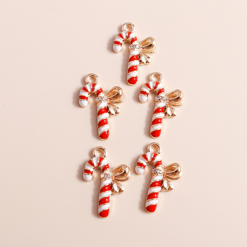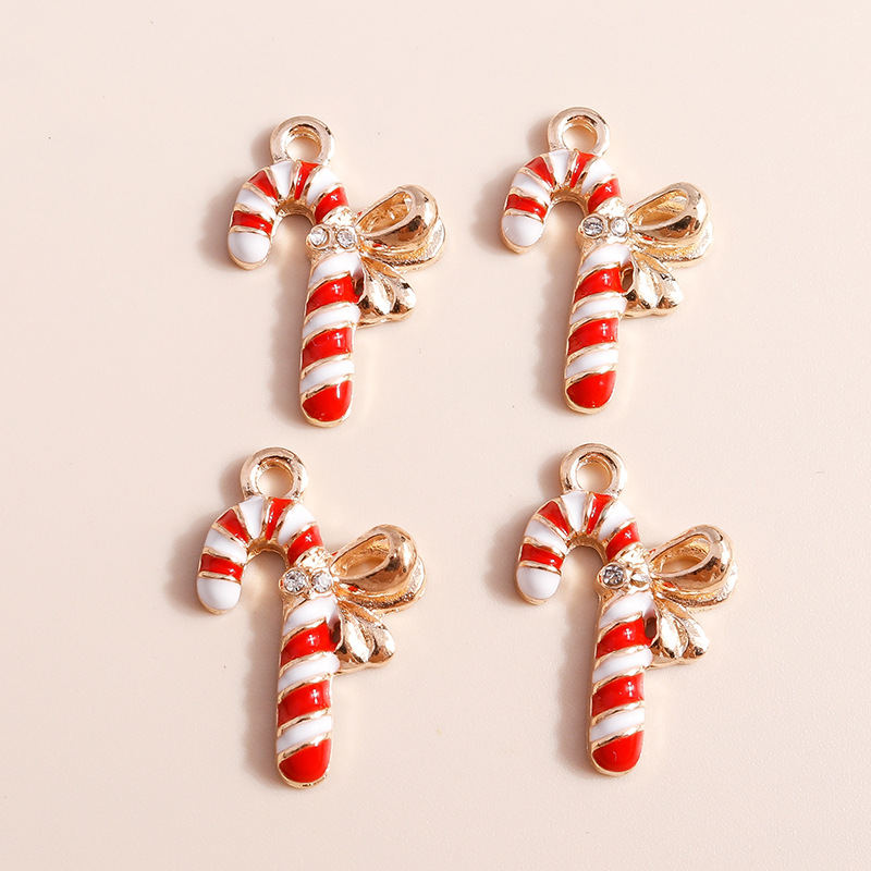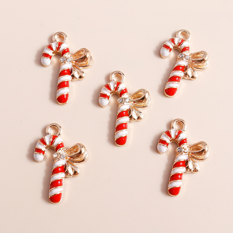 Colgantes de Navidad de aleación de cinc, aleación de zinc, Bastón de Caramelo de Navidad, chapado, Diseño de Navidad & Bricolaje & esmalte, 10PCs/Bolsa, Vendido por Bolsa