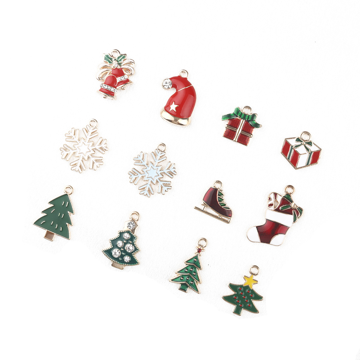 Colgantes de Navidad de aleación de cinc, aleación de zinc, chapado en color dorado, Bricolaje & diferentes estilos para la opción & esmalte & con diamantes de imitación, más colores para la opción, 100PCs/Bolsa, Vendido por Bolsa