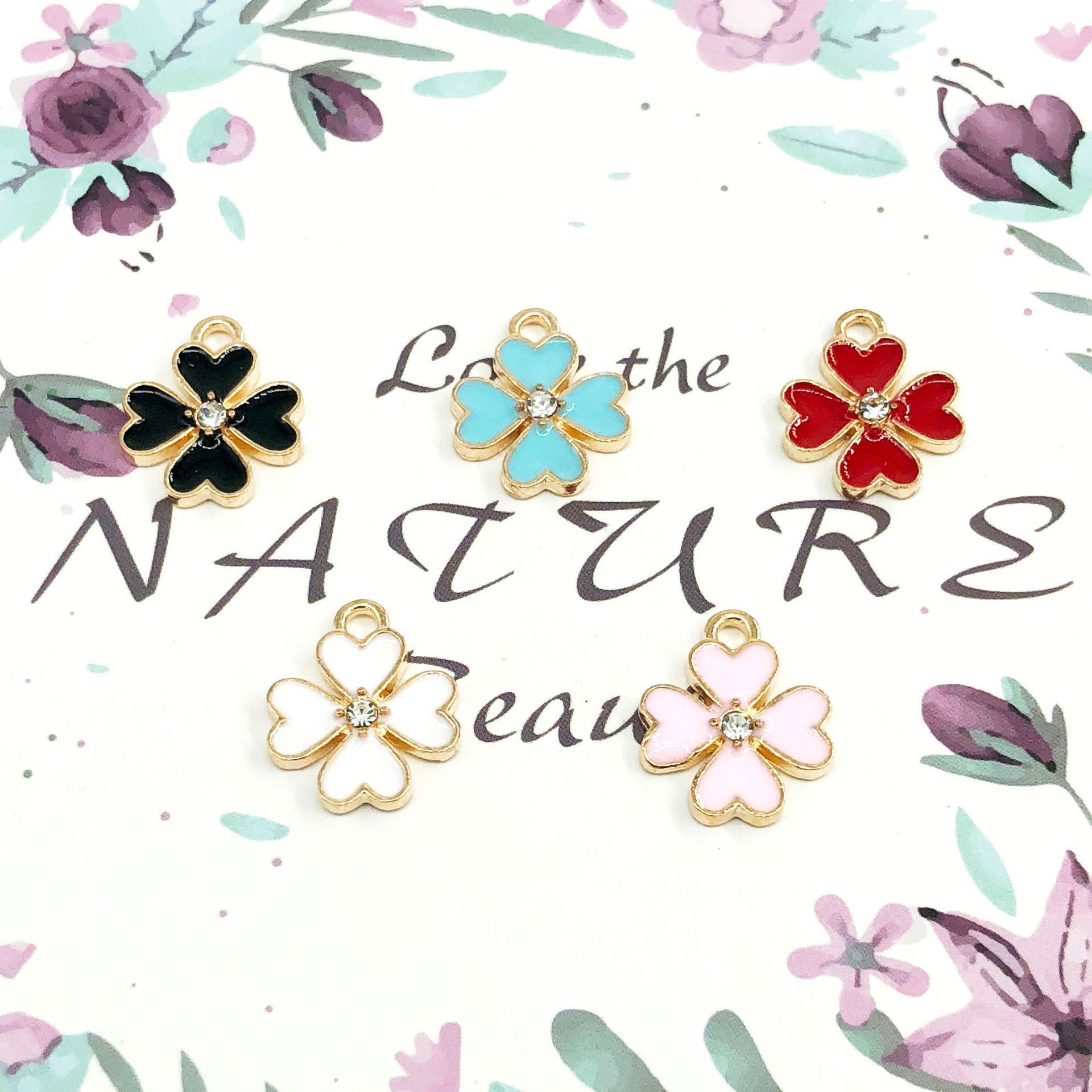 Colgantes de esmalte de la aleación del cinc, aleación de zinc, Flor, chapado en color dorado, Bricolaje & con diamantes de imitación, más colores para la opción, 13x15mm, 100PCs/Bolsa, Vendido por Bolsa