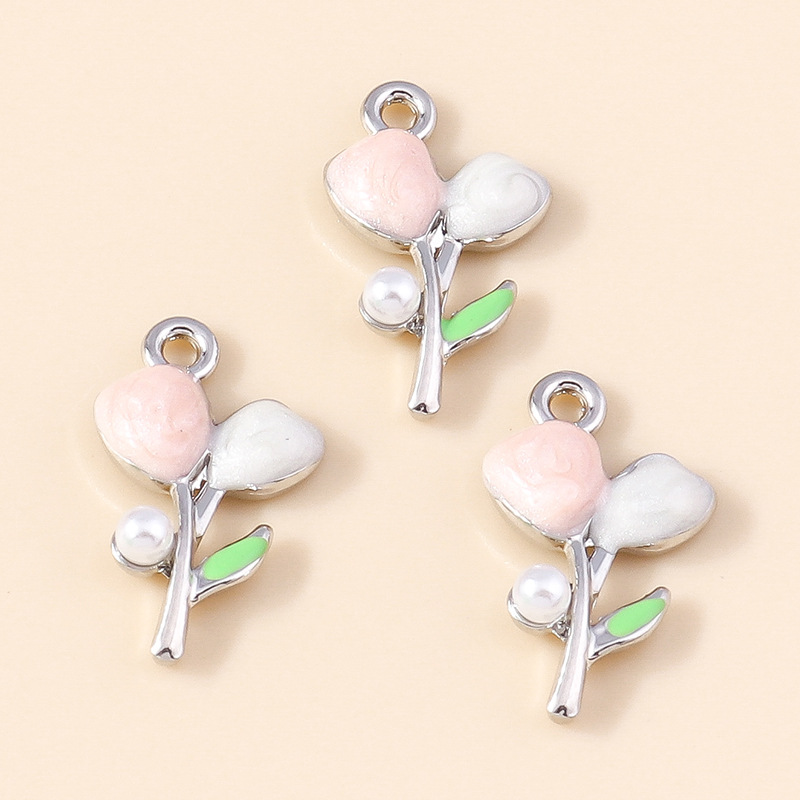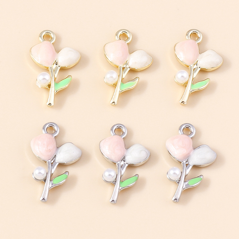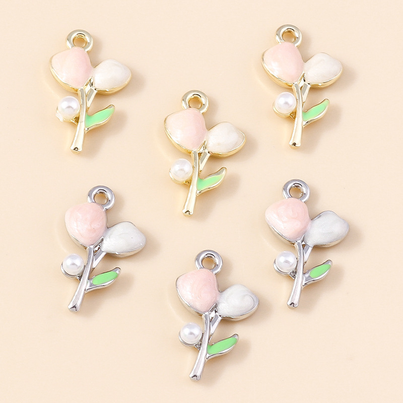 Colgantes de esmalte de la aleación del cinc, aleación de zinc, Tulipán, chapado, Bricolaje, más colores para la opción, 5PCs/Bolsa, Vendido por Bolsa
