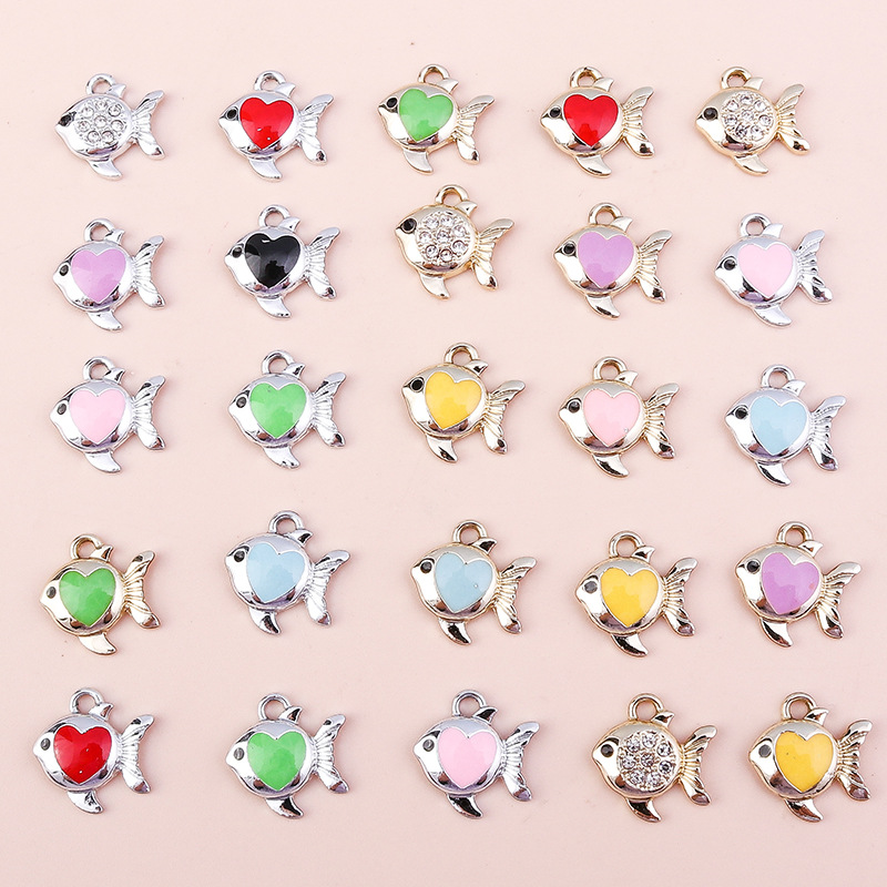 Colgantes de esmalte de la aleación del cinc, aleación de zinc, Pez, chapado, Bricolaje & con diamantes de imitación, más colores para la opción, 10PCs/Bolsa, Vendido por Bolsa