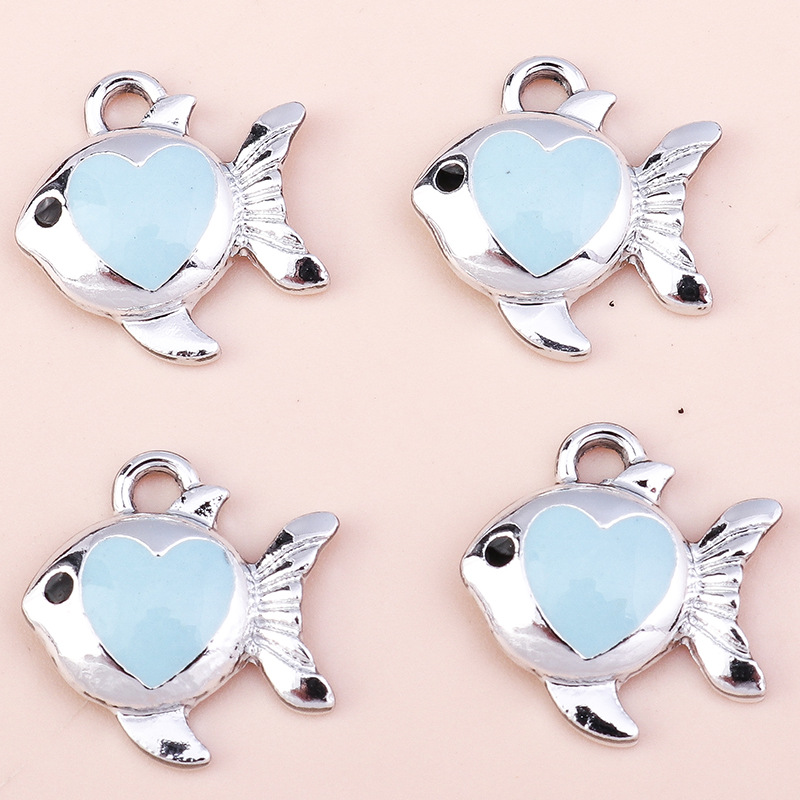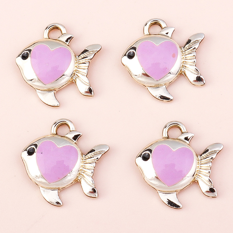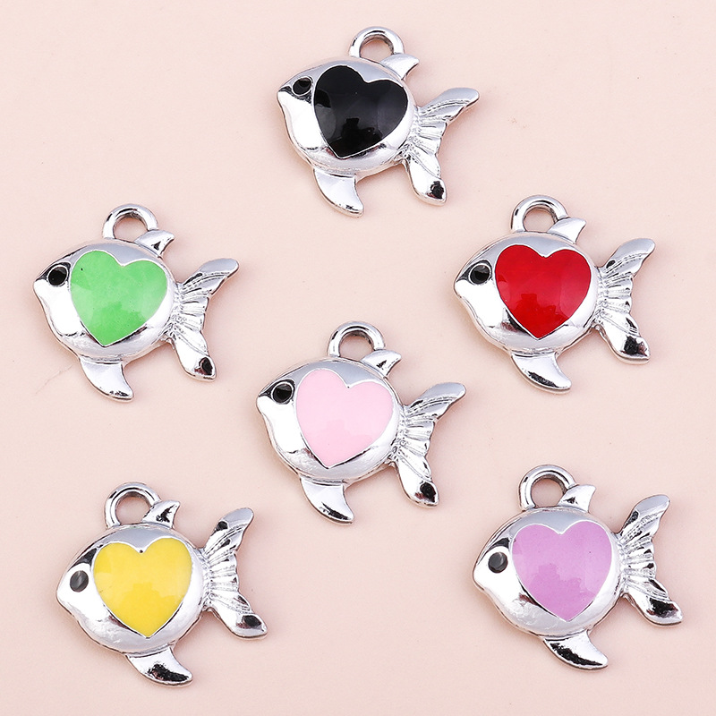 Colgantes de esmalte de la aleación del cinc, aleación de zinc, Pez, chapado, más colores para la opción, 22x25x5mm, Vendido por UD
